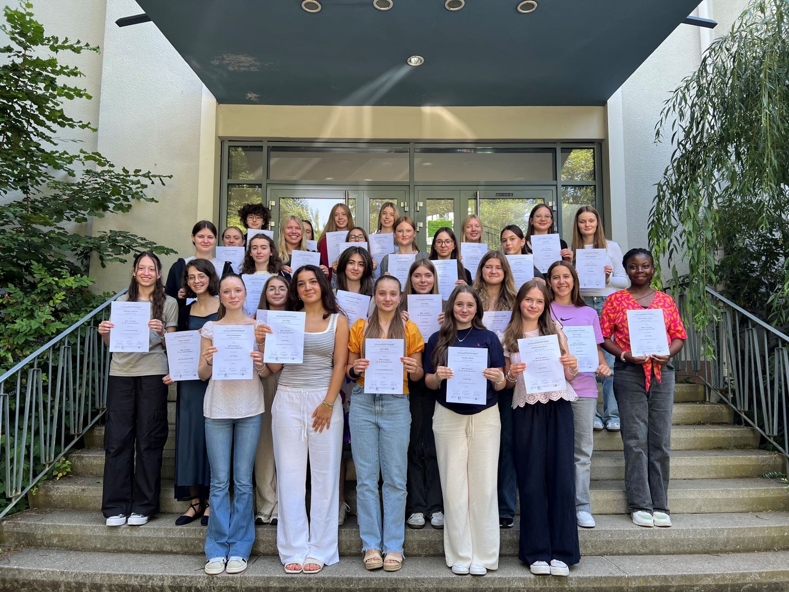 Darüber hinaus zeichnet uns aus, dass wir alle Schulabschlüsse unter einem Dach anbieten, weil wir eine integrative Realschule plus und ein Gymnasium sind. Vorteilhaft für unsere Schülerinnen ist, dass eine hohe Durchlässigkeit der Schularten gegeben ist, ohne einen Schulwechsel nach sich zu ziehen.