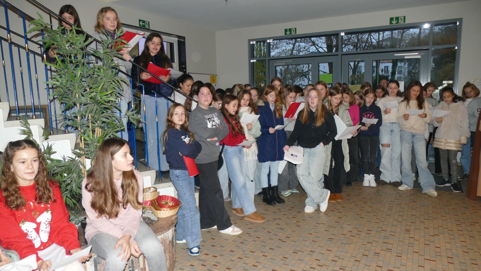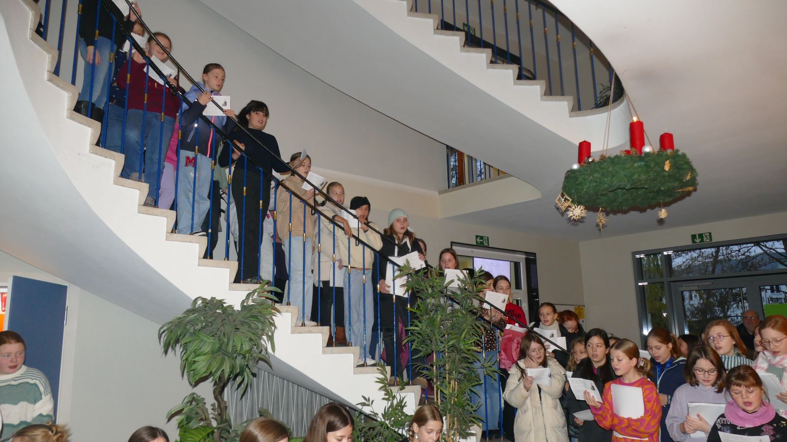 In der ersten Schulstunde am 02.12.2024 gestaltete die Klasse 6c für alle 5er- und 6er-Schlerinnen eine kleine Feier. Diese eröffnete die Aktion „Lebendiger Adventskalender an der Schönstätter Marienschule“, bei der an jedem Tag bis zu den Weihnachtsferien eine Klasse ihre Tür schmückt und feierlich öffnet.