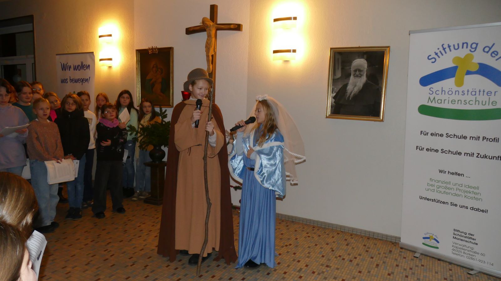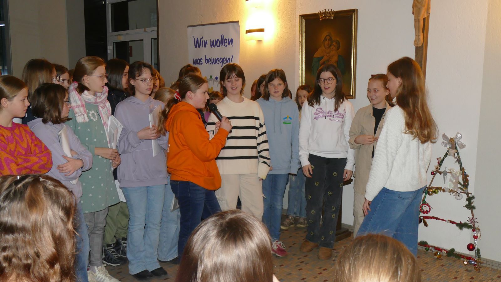 Maria, hast du gehört: Die Schülerinnen der Marienschule gestalten einen „lebendigen Adventskalender“.