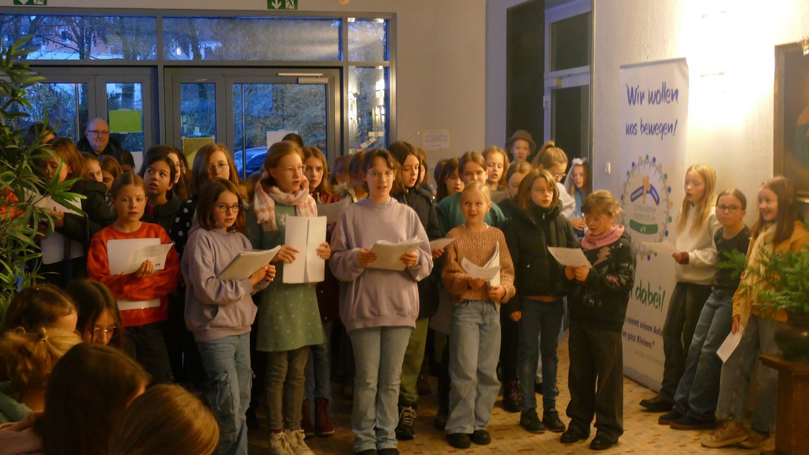 Am Ende der Adventseinstimmung verteilten Schülerinnen der Klasse 6c an alle selbst gebackene Plätzchen und Faltkärtchen mit einer aufgemalten Tür und einem von 32 verschiedenen Vorsätzen für „offene Türen“ im Advent. Hier eine kleine Auswahl: