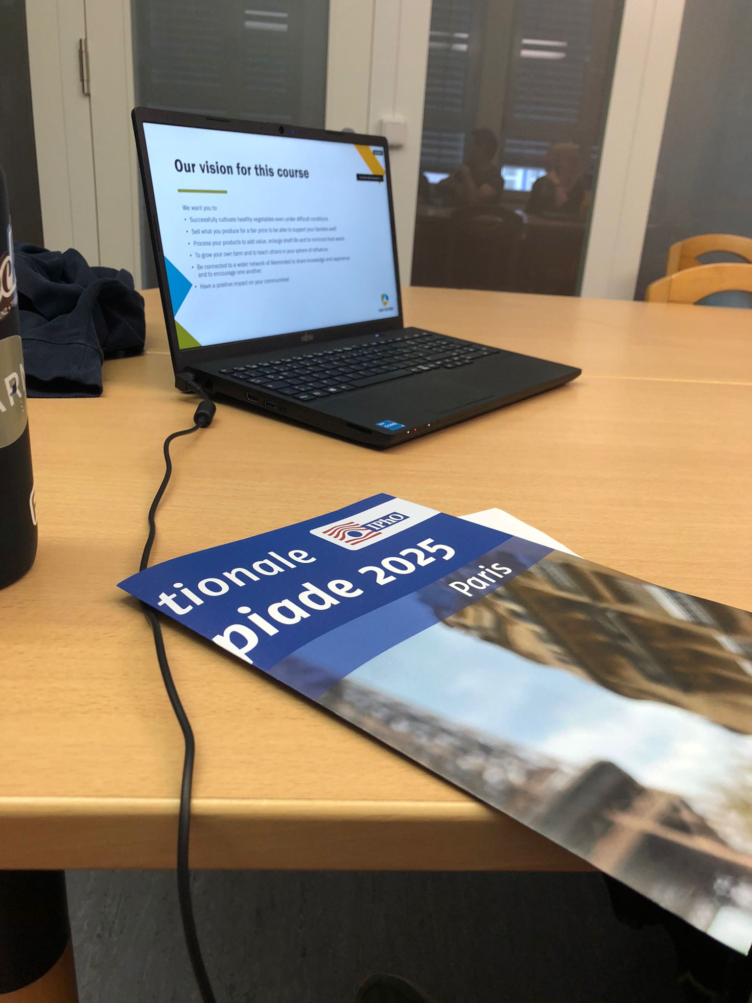 Drei Schülerinnen aus den Stufen 12 und 10, Frau Klug und Herr Ullenbruch haben über eine Zusammenarbeit mit dem Freundeskreis Marienland e.V. die Teilnahme an einem Webinar des Schweizer Unternehmens Global Food Garden zum Thema Wicking bed gesponsert bekommen. Am Dienstag,10.09.24 war die Auftaktsession, bei der man lernte, wie man ein Wicking Bed baut. Global Food Garden beschäftigt sich mit alternativen und ressourcenschonenden, nachhaltigen Anbaumethoden wie Wicking beds, Vertical farming und Aquaponik. Bei einem Wicking bed wird unterhalb des Gemüsebeets eine Drainageschicht eingebaut, damit das Gemüse bestens mit Wasser versorgt wird und das überschüssige Wasser wird in einem Tank aufgefangen und über eine Pumpe dem Beet wieder zugeführt. Dadurch wird nur sehr wenig Wasser benötigt, was vor allem für Länder im globalen Süden mit längeren Trockenzeiten interessant ist. Das Webinar findet vierzehntägig statt und läuft bis Februar 2025. Interessierte Teilnehmer kommen aus Norwegen, Schweden, Madagaskar, Tansania und aus Burundi. Langfristiges Ziel ist es, ein Wicking bed auf dem Schulgelände zu errichten und eine Finanzierung für ein Wicking bed in Burundi auf den Weg zu bringen.