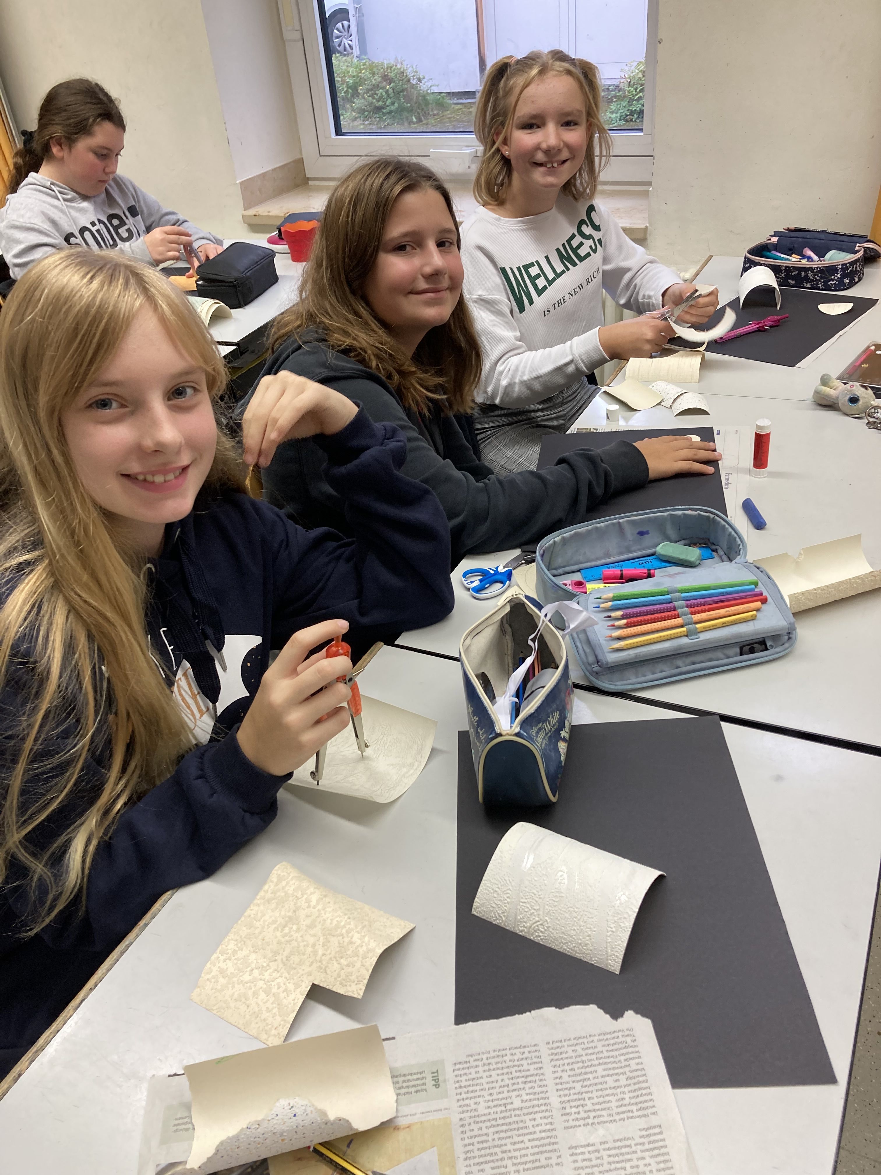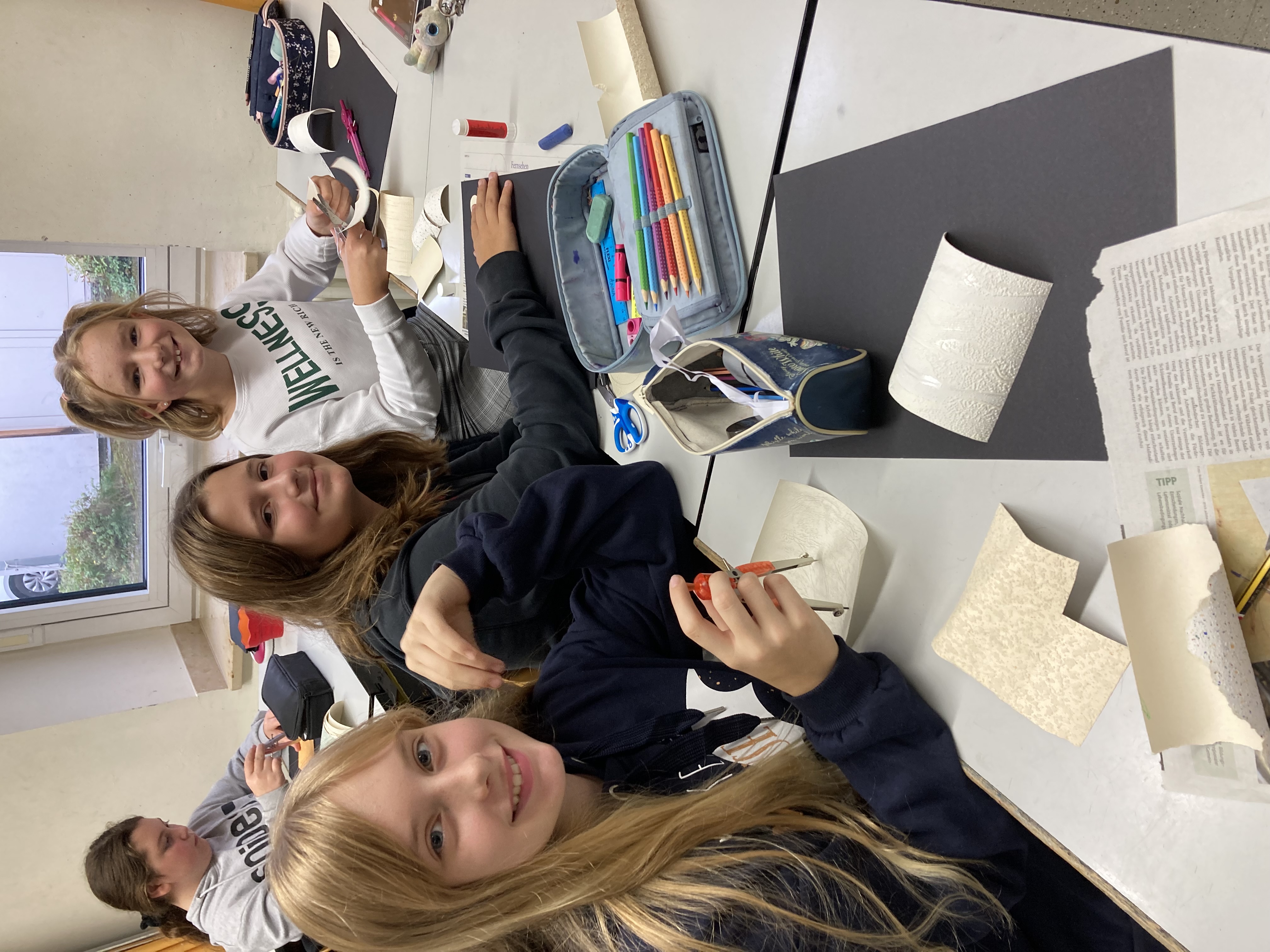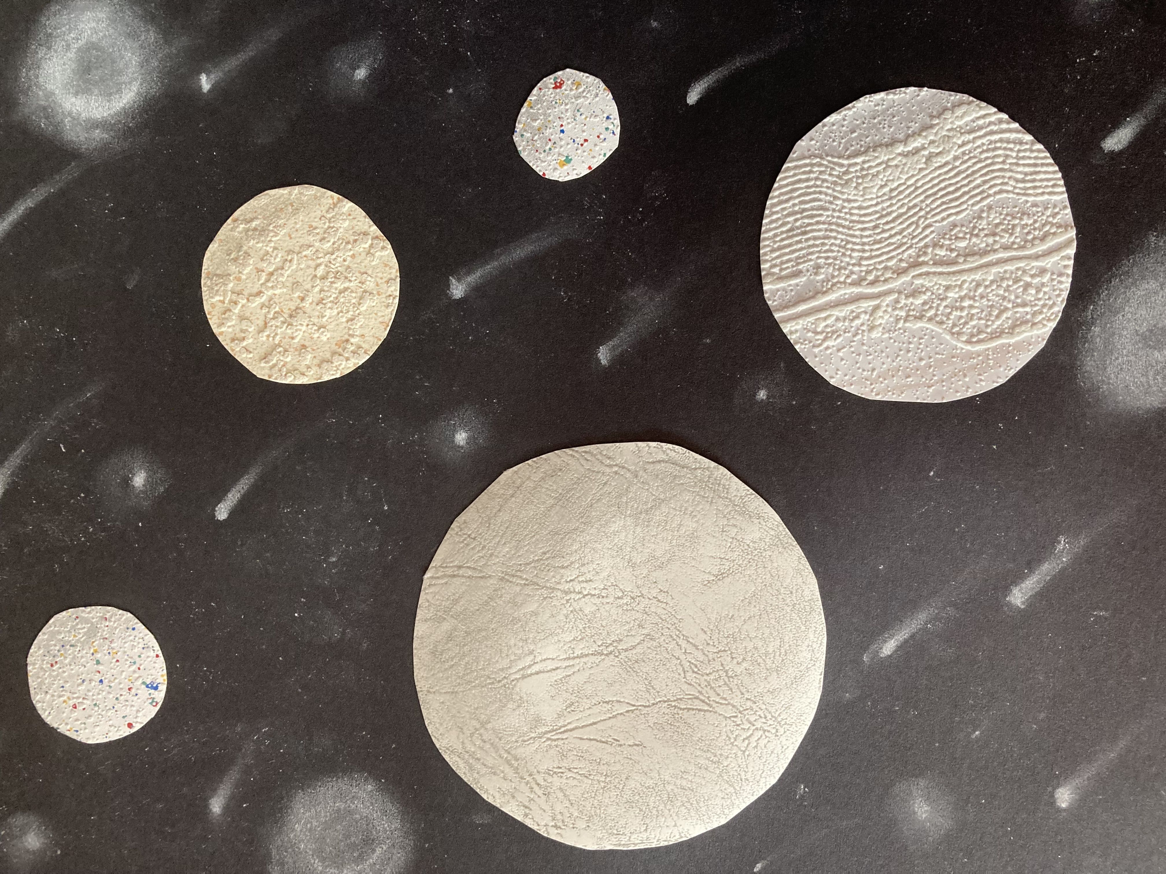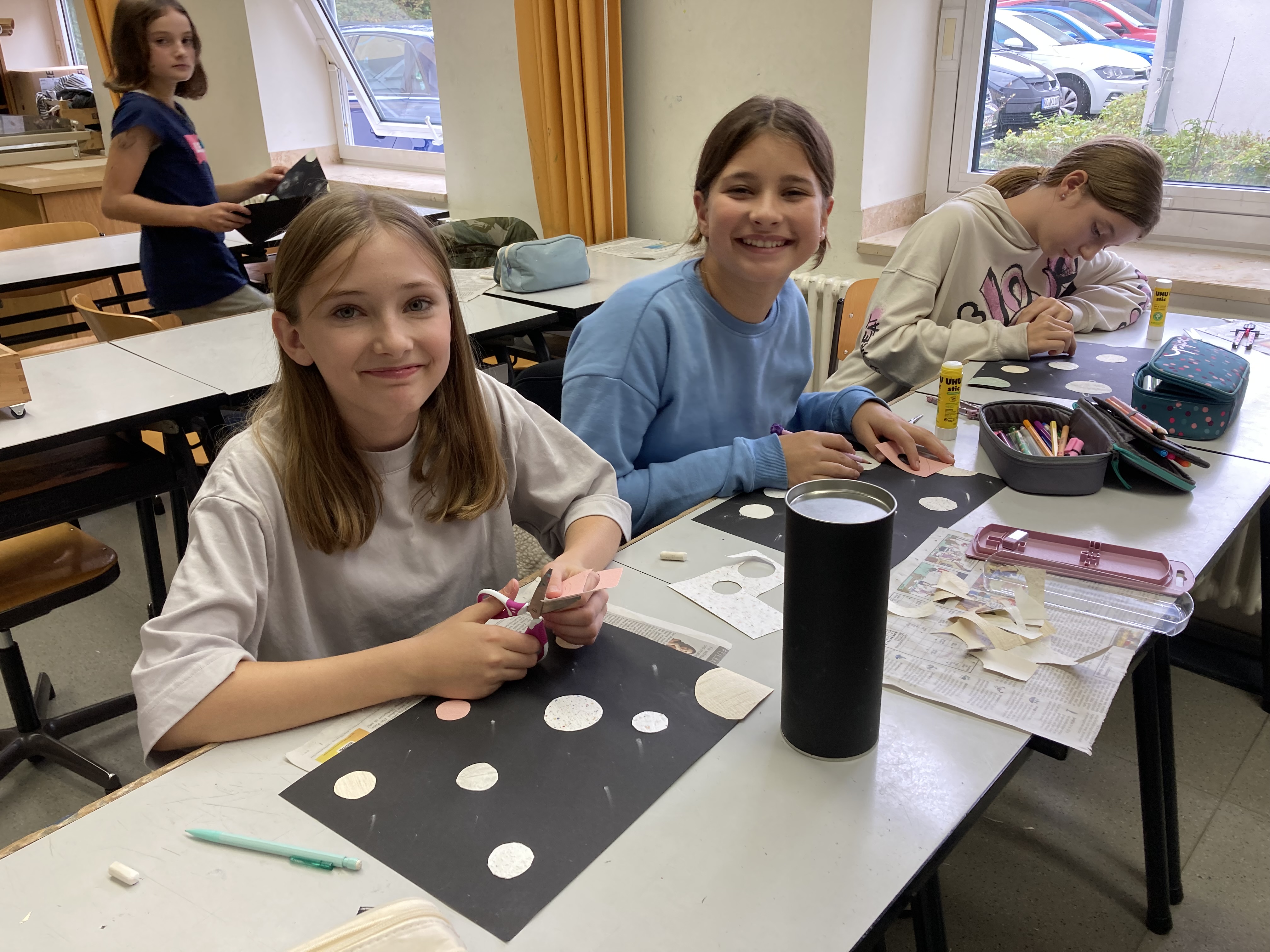 Wie unterschiedlich der sein kann, zeigt die Auswahl von Bildern der Klassen 6 a - d, die bei ihrem Astronomietag nur knapp 45 Minuten Zeit hatten um ihre fantasievollen Vorstellungen in sehenswerte Ergebnisse umzusetzen.