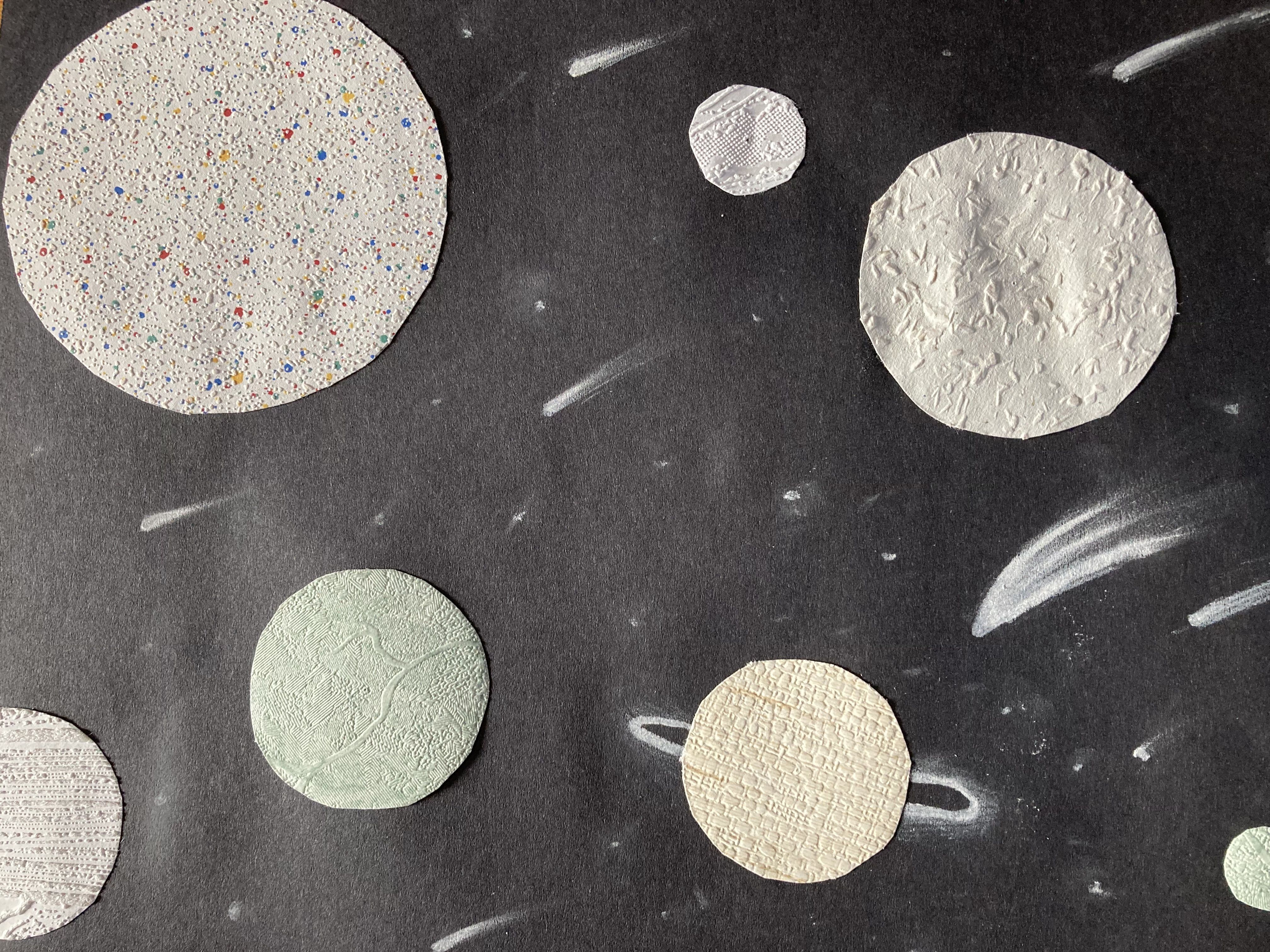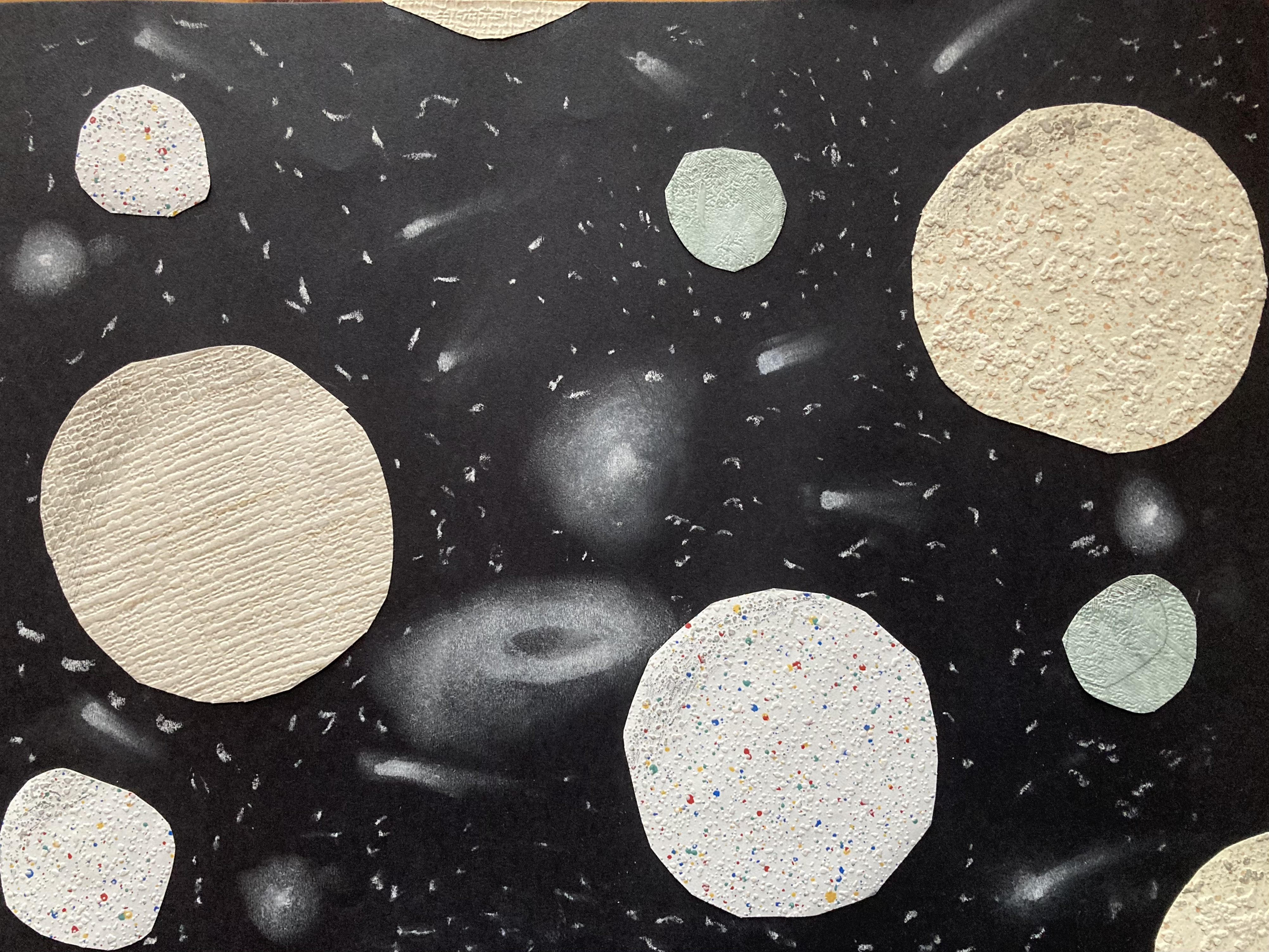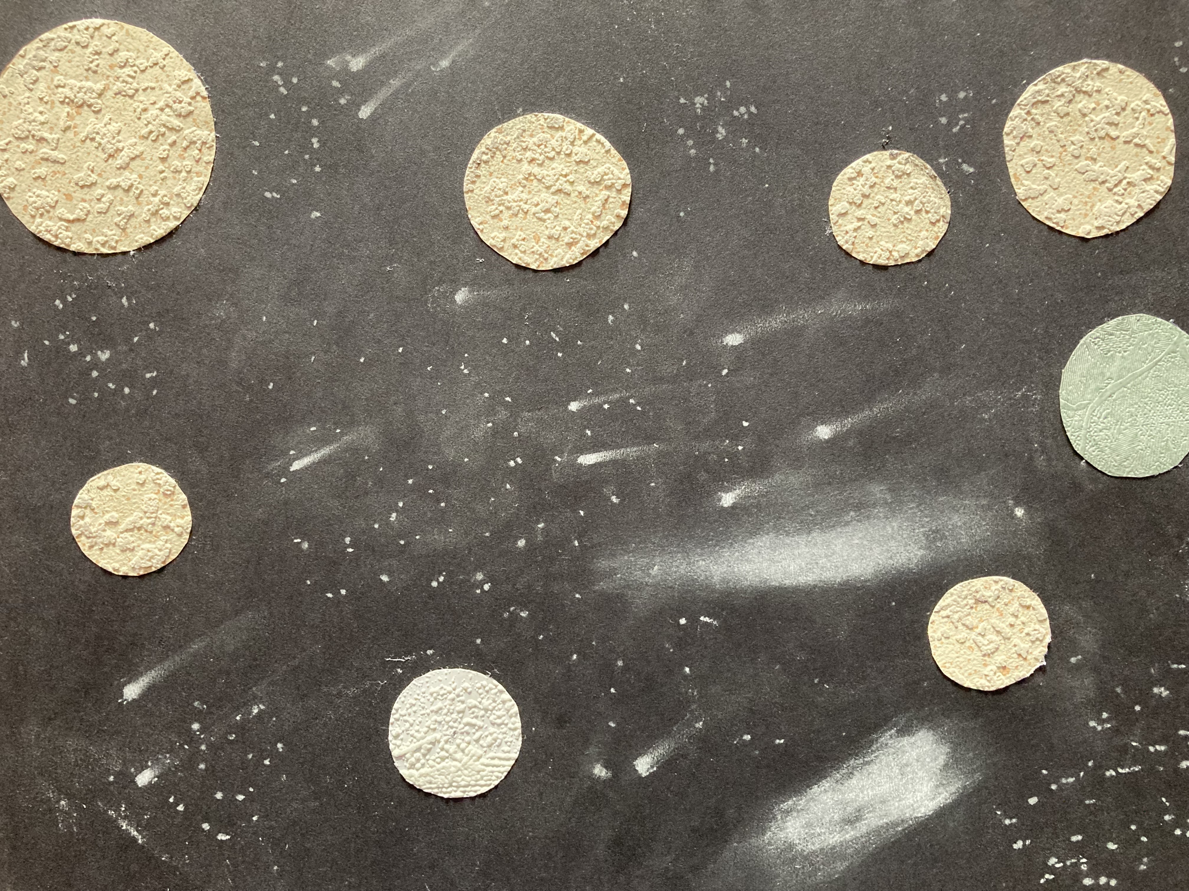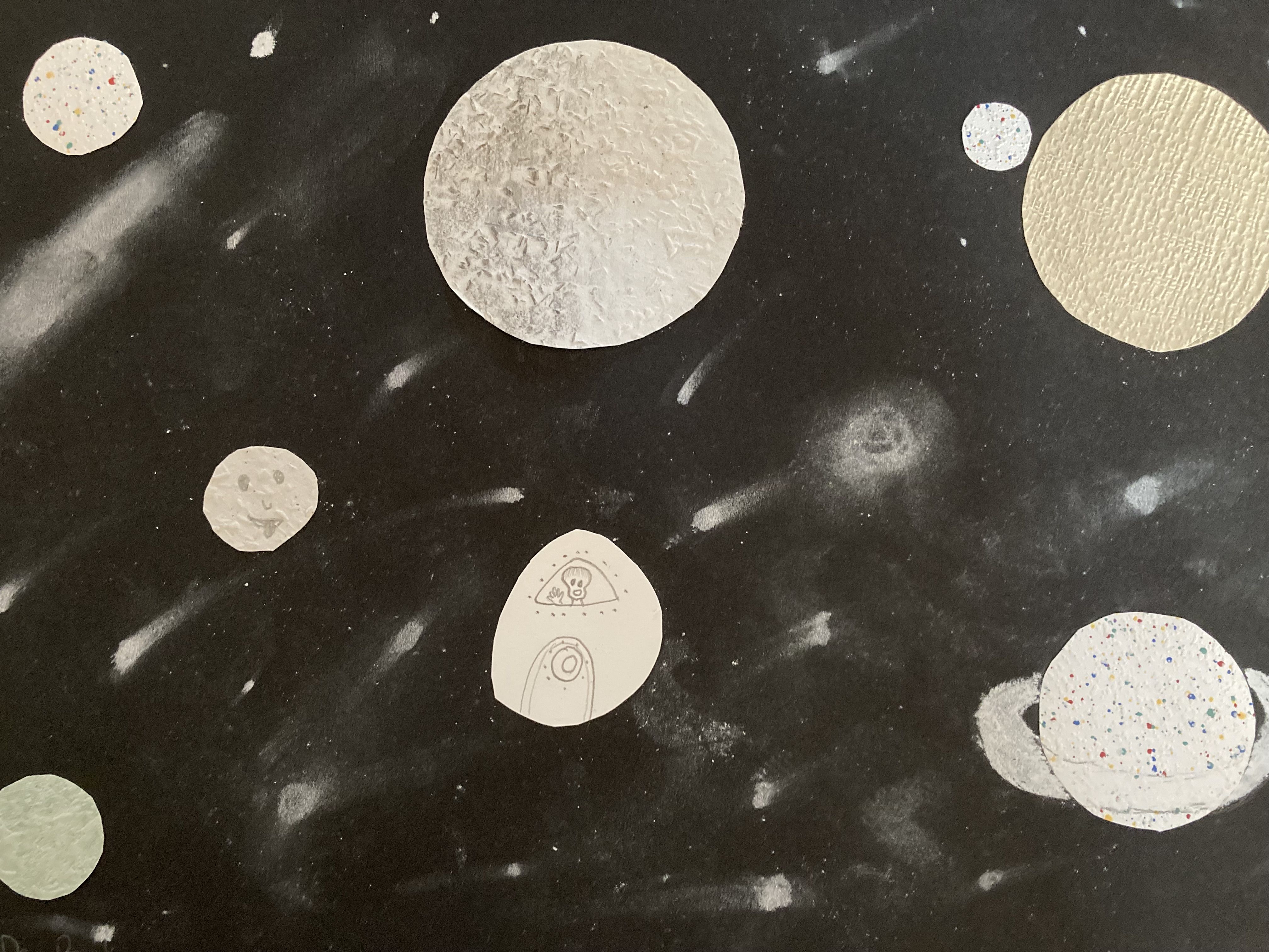 Ein paar Tapetenreste, Schere, Kleber, Kreide - und schon entsteht ein Blick in die unendlichen Weiten des Weltalls!