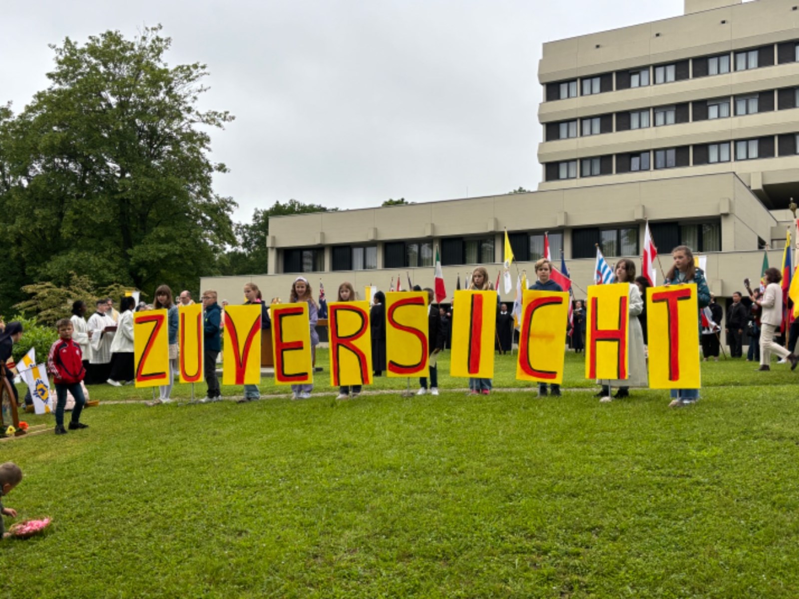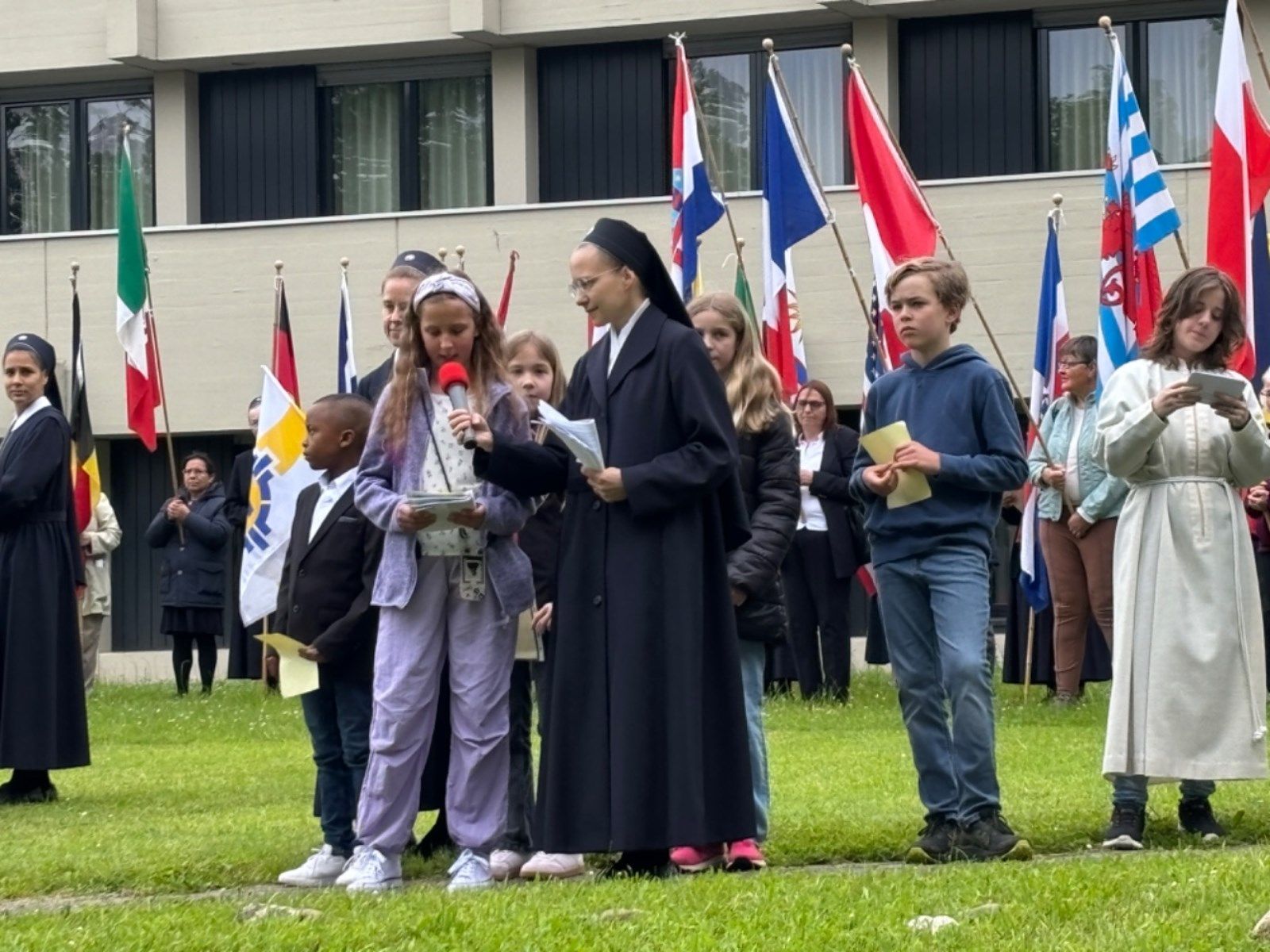 Bei der Festmesse und der anschließenden großen Prozession am Sonntag, den 02.06.2024 wirkten Schülerinnen der Jahrgangsstufen 5, 6, 7, und 9 mit. Sie waren Ministrantinnen, Fahnenträgerinnen und Lektorinnen bei den Fürbitten.