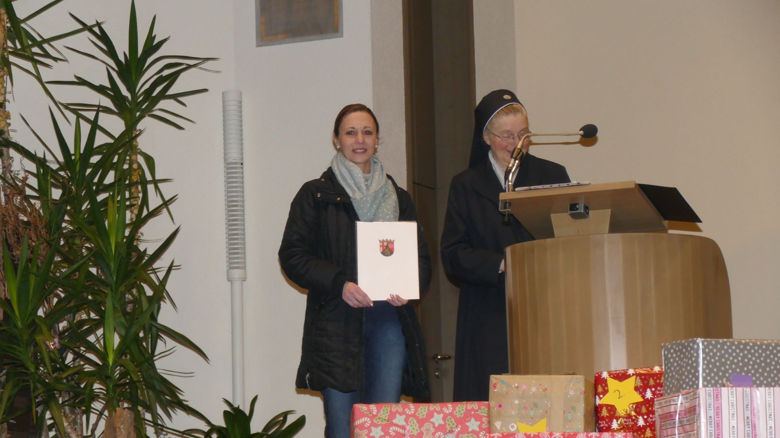 Nach dem Gottesdienst erhielt Frau Luß, die Leiterin der Realschule, durch Sr. M. Gabriele ihre Beförderungsurkunde, zu der die gesamte Schulgemeinschaft gratulierte.