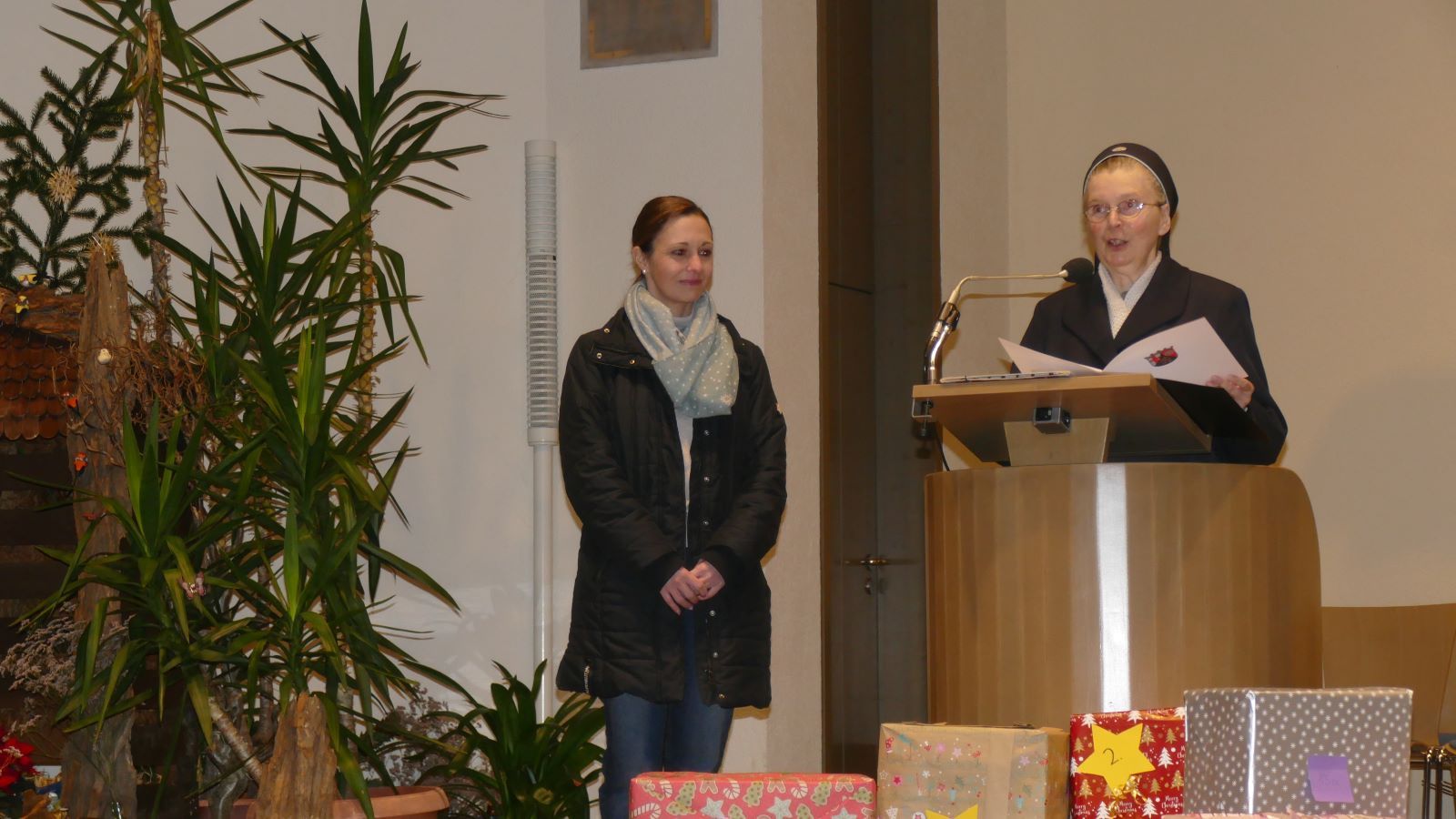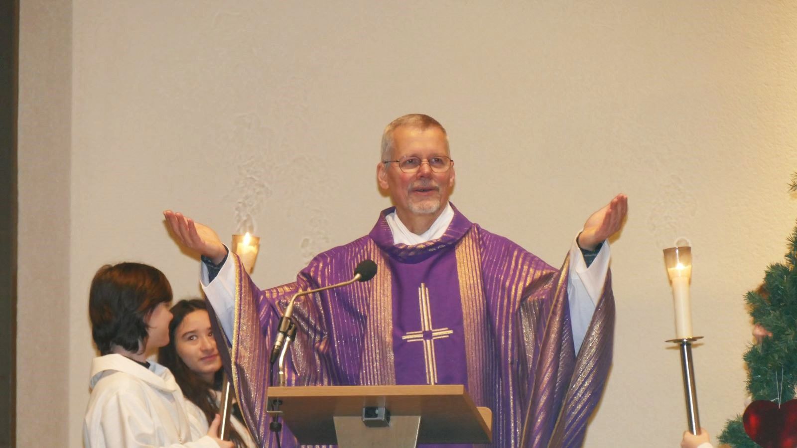 In seiner Predigt ging Pater Kühlke auf Parallelen zwischen der aktuellen politischen Situation und der Zeit vor 2000 Jahren ein: Genau wie heute war auch zur Zeit der Geburt Jesu nicht alles gut in der Welt. Aber Weihnachten bedeutet: Gott zählt weiter mit uns. Gott ist stärker als das Unheile der Welt.