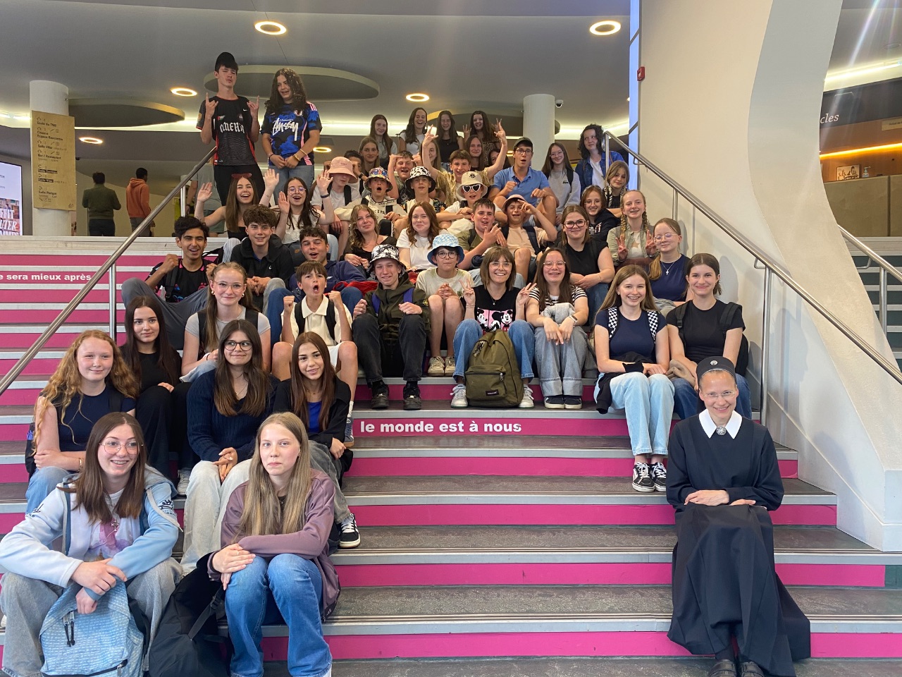 Nach Rennes, in die Hauptstadt der Bretagne, zog es die Schülerinnen der Abschlussklassen des Collège Stanislas und die SMS-Schülerinnen am Nachmittag. Dort ließen sie sich auf ein Escape-Room-Game (Cache au trésor) ein und bekamen am Abend im Stadttheater ein großes Event mit. Professionelle Akrobatik-Künstlerinnen zeigten ihr Schauspiel-, Tanz-und Gesangstalent in einer spektakulären Rollerskate-Performance. Die Show war reich an Licht- und Klangeffekten und erhielt am Ende langen Applaus und Standing Ovations.