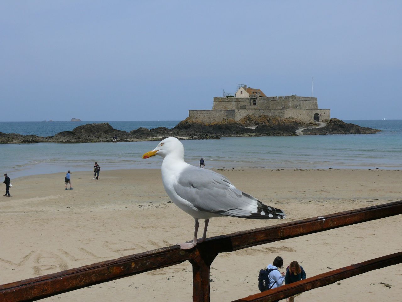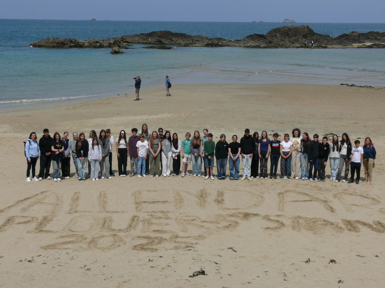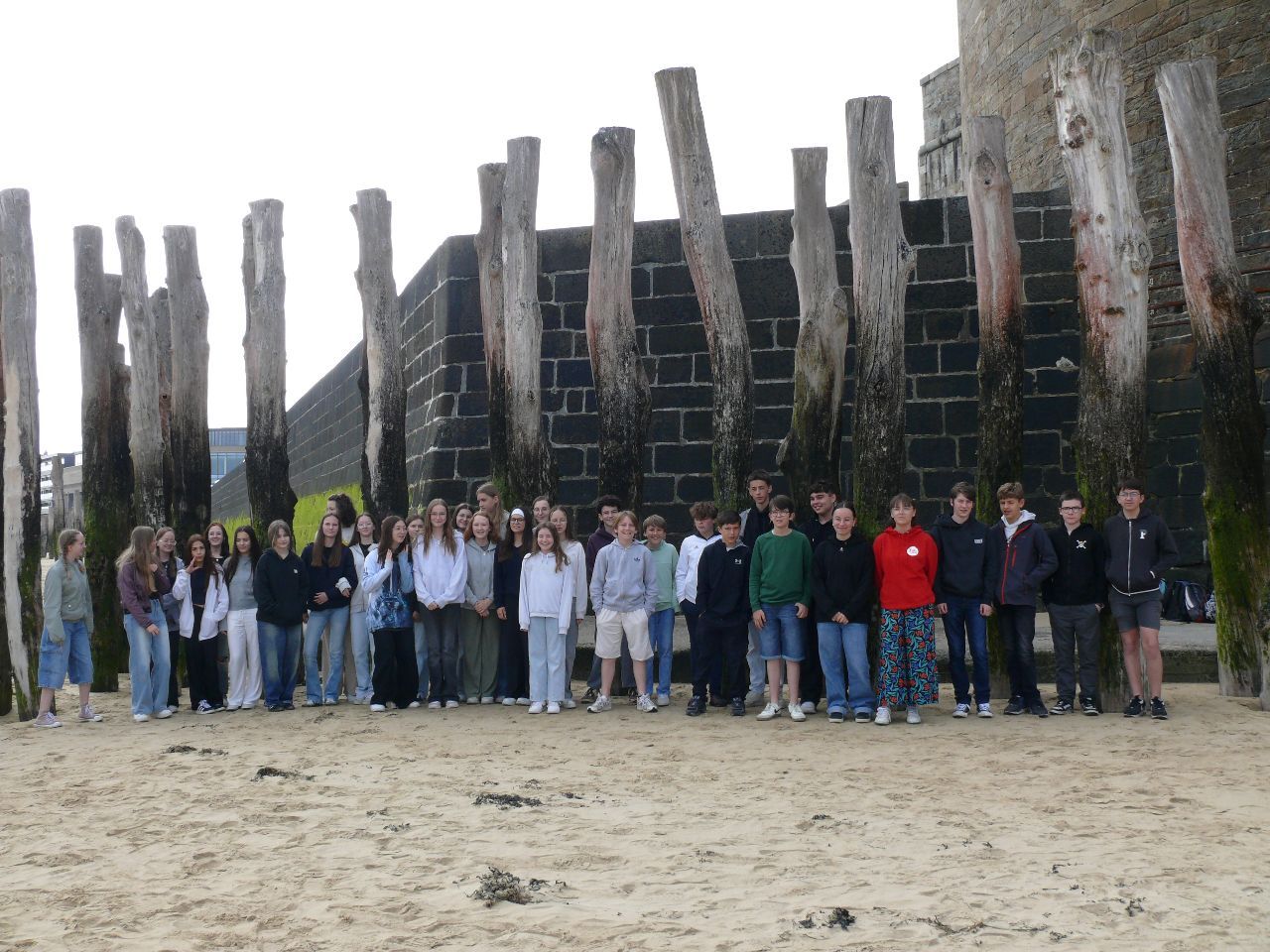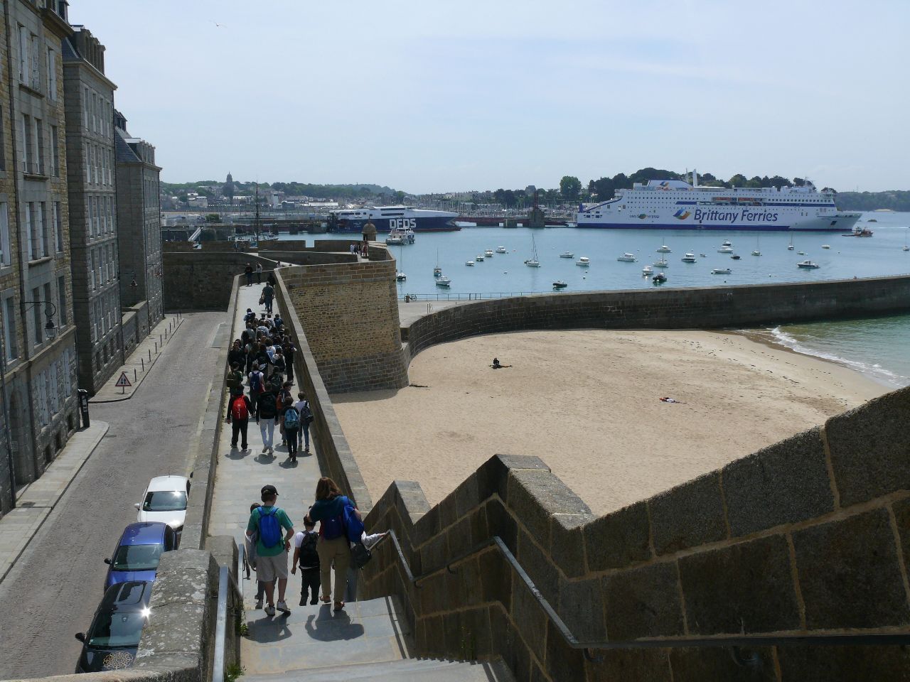 Wenn man schon in der Bretagne weilt und ein Sonnentag gemeldet ist, dann sollte man ans Meer fahren. Die deutschen und französischen Schülerinnen und Schüler verbrachten den Tag in St. Malo, der legendären Korsaren-Stadt. Am Vormittag stand „nettoyage de la plage“, Strandreinigung, auf dem Programm. Als positive Erfahrung konnte verzeichnet werden, dass der Strand nicht zugemüllt war. Doch Glasscherben, Plastik- und Aluminiumabfälle etc. fand man dennoch. Die französische Kollegin des Collège, die den Ausflug begleitete, ließ die Schülerinnen und Schüler schätzen, wie lange es dauert, bis die Fundstücke verrotten. Es gab Erstaunen und Betroffenheit angesichts der Fakten – Glasflaschen: 4000 Jahre, Plastikflaschen: 1000 Jahre, Sardinenbüchsen: 500 Jahre, Plastiktüten: 400 Jahre, Cola-Dosen: 200 Jahre, Zigarettenstummel: 2 Jahre …
