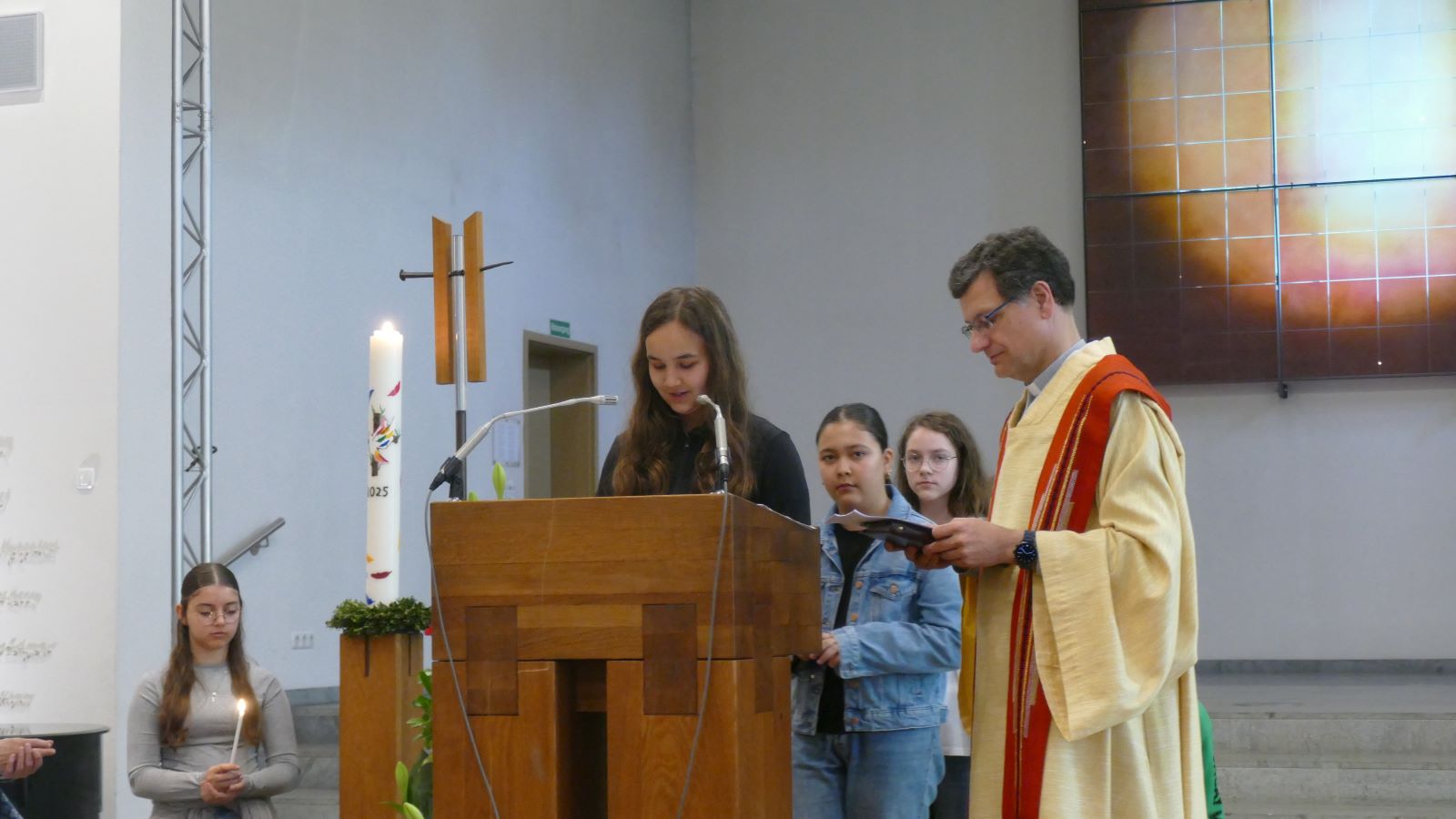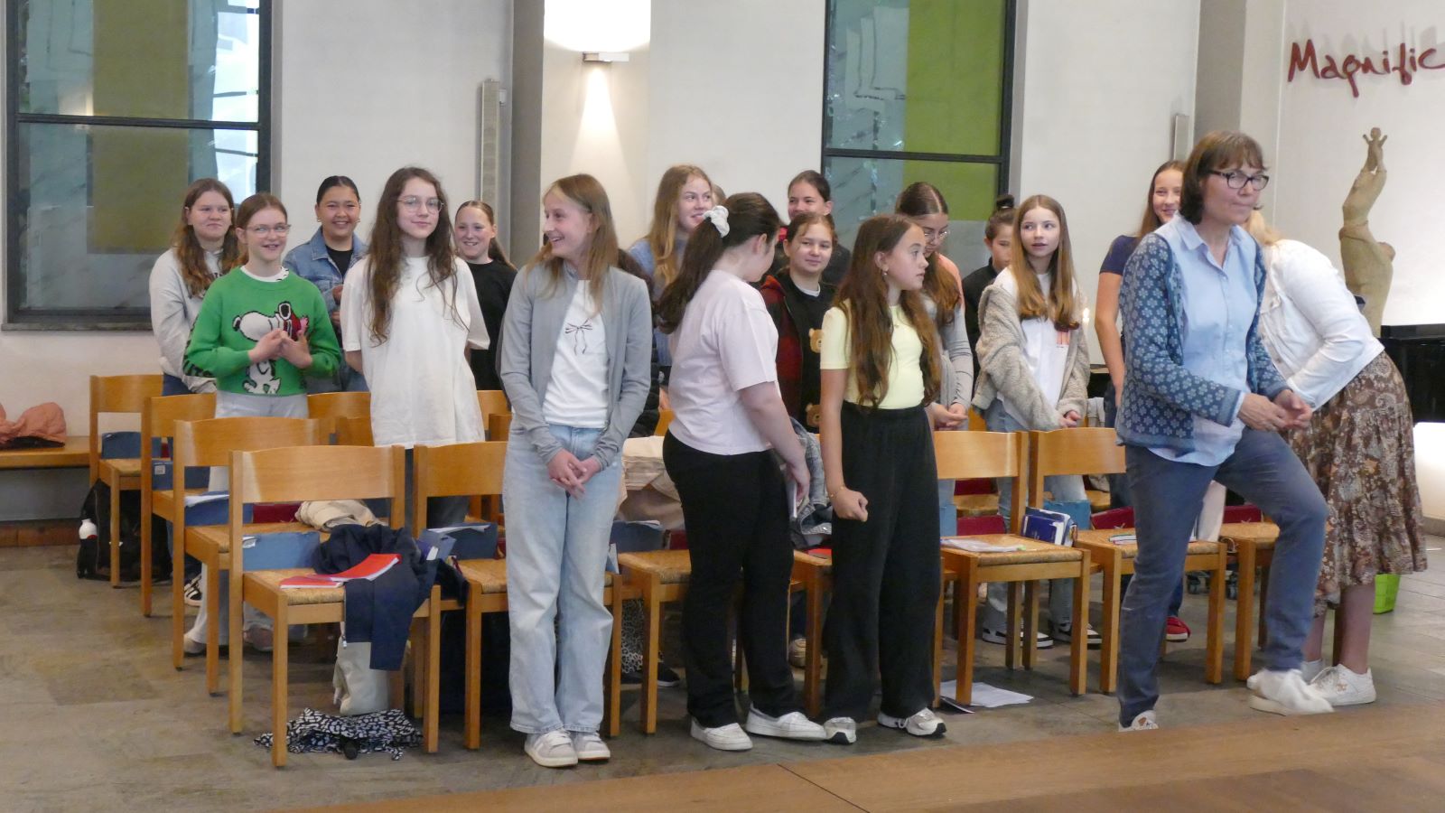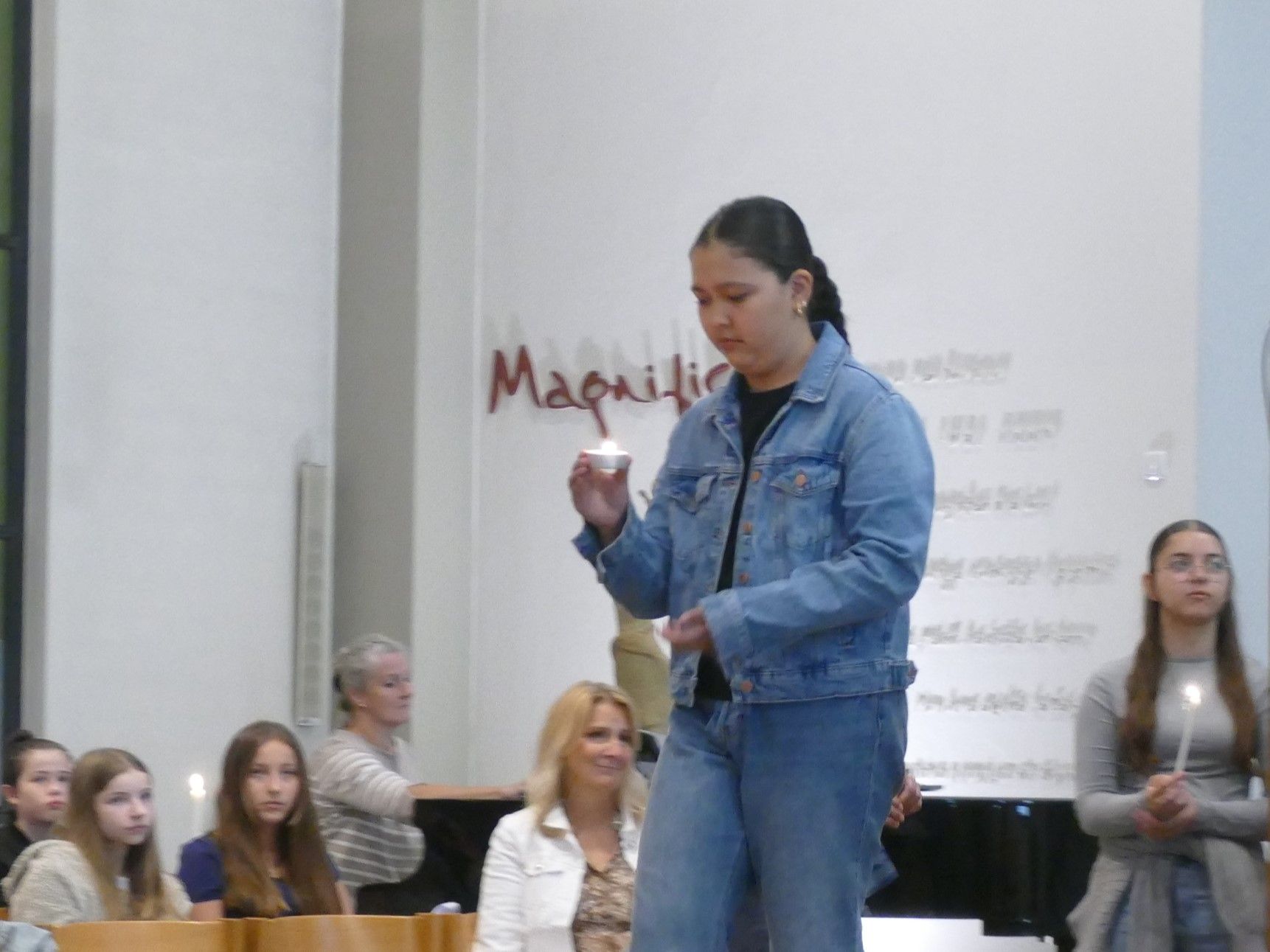 Am letzten Schultag vor Pfingsten gestaltete die 6a zusammen mit ihrer Religionslehrerin Frau Fölbach einen pfingstlichen Stufengottesdienst in die Pallottikirche. In Liedern, die Frau Blatt am Flügel begleitete, Bibeltexten, Gebeten und Meditationen wurde den Schülerinnen der 5. und 6. Klassen nähergebracht, was sich vor 2000 Jahren an Pfingsten in Jerusalem ereignet hat und wie der Heilige Geist heute in der in der Welt, in der Gemeinschaft und in jedem Einzelnen wirken kann und will.