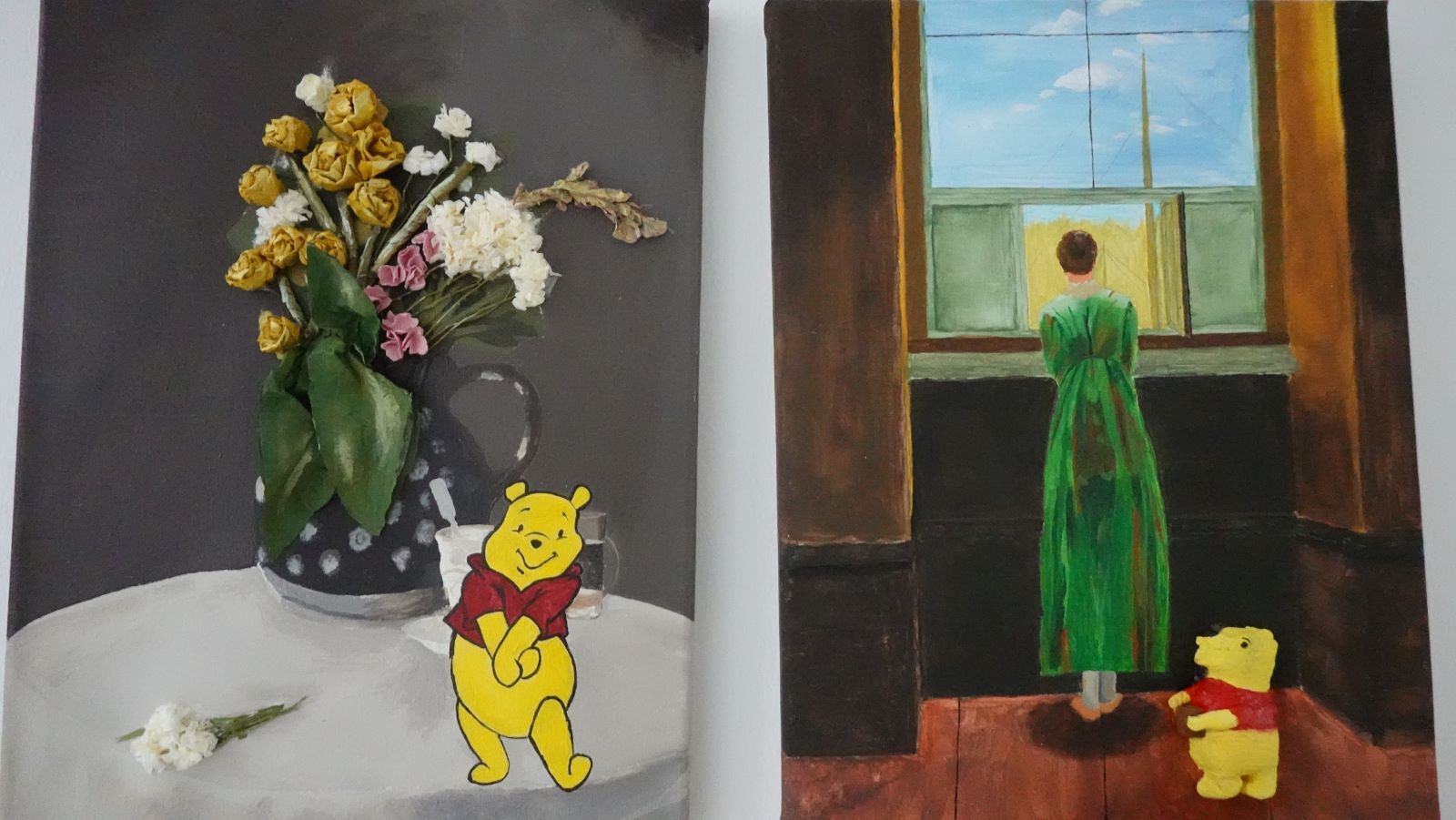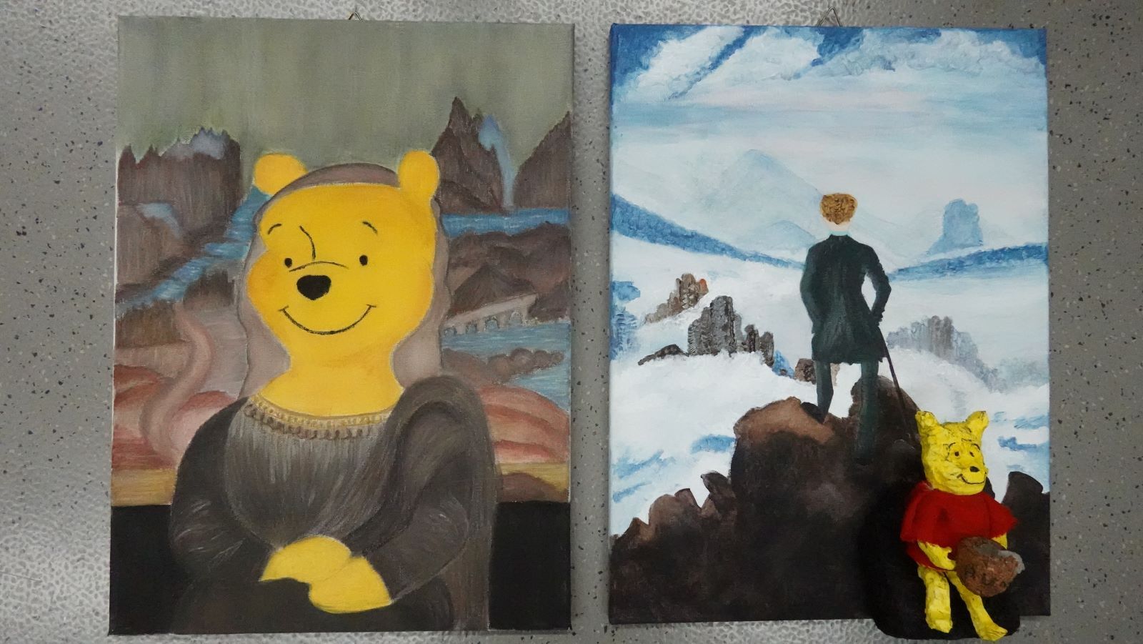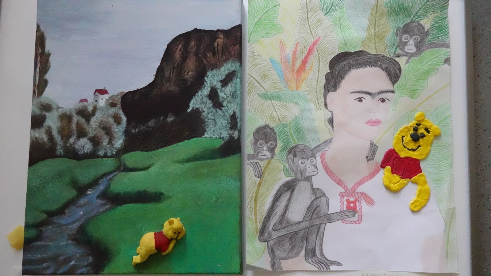 Das Thema ,,Winnie Puuh in einem Gemälde einbringen‘‘ inspirierte die Schülerinnen, ihn auf vielfältige Weise darzustellen – sei es als Mittelpunkt einer farbenfrohen Landschaft oder in einem modernen, abstrakten Stil.
