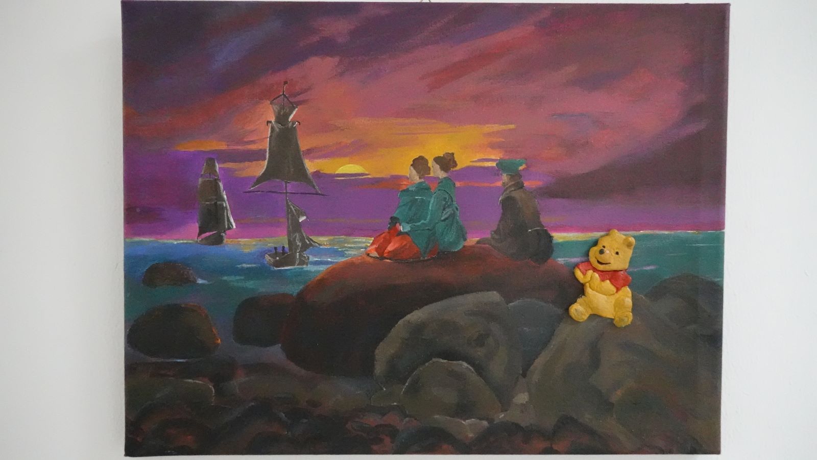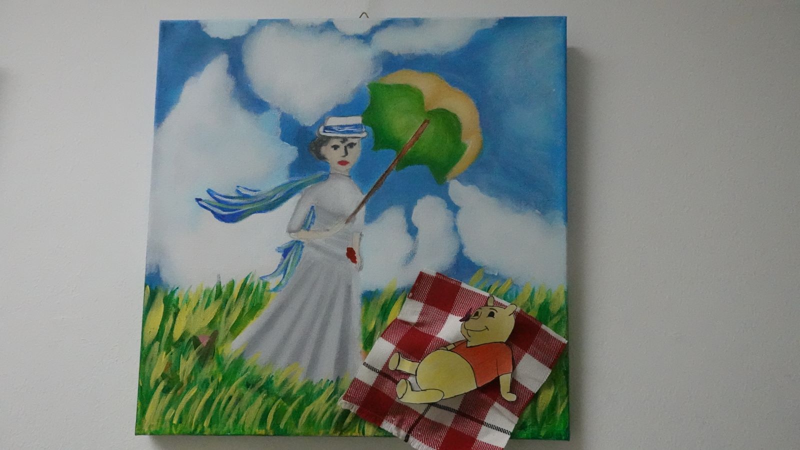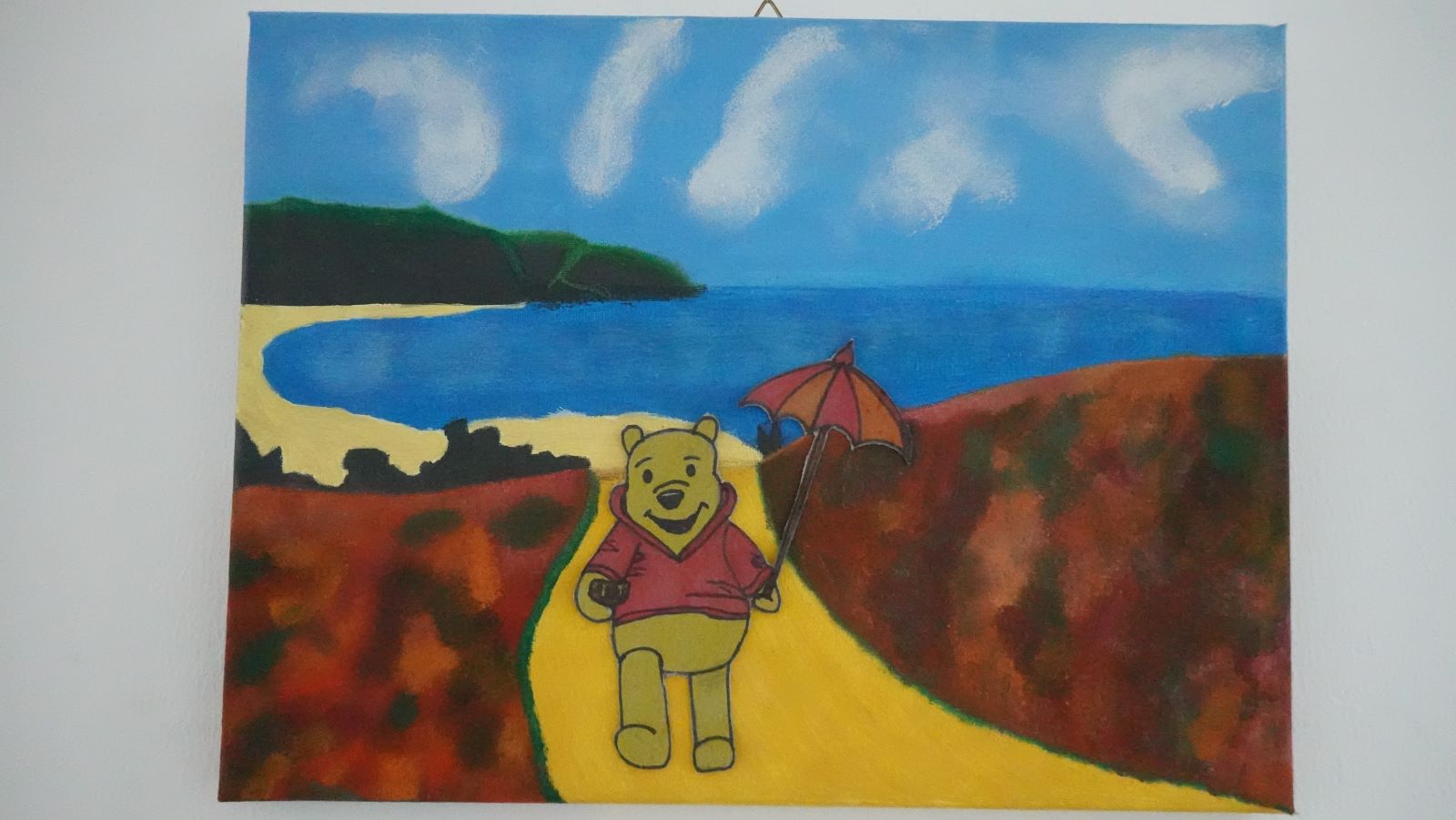 Das Thema ,,Winnie Puuh in einem Gemälde einbringen‘‘ inspirierte die Schülerinnen, ihn auf vielfältige Weise darzustellen – sei es als Mittelpunkt einer farbenfrohen Landschaft oder in einem modernen, abstrakten Stil.