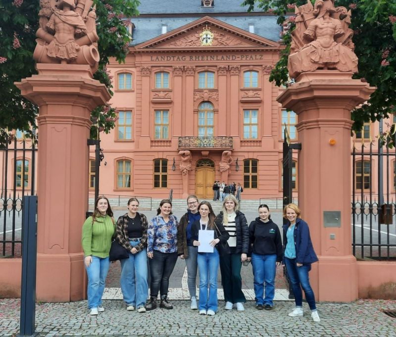 Am 07. Mai fuhren unsere Regionalsiegerinnen Lena (9c) und Karla (11a) zu dem Landeswettbewerb von Jugend debattiert nach Mainz. Als tatkräftige Unterstützung konnte es sich der Rest der AG und unsere betreuende Lehrerin Frau Fröhling nicht nehmen lassen, sie dorthin zu begleiten und anzufeuern.