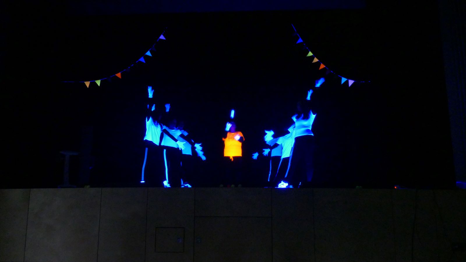 Der zweite Teil des Abends begann mit einem sportlichen Highlight: Der Sportkurs von Frau Thur zeigte einen kreativen Schwarzlicht-Tanz, der das Publikum staunen ließ.