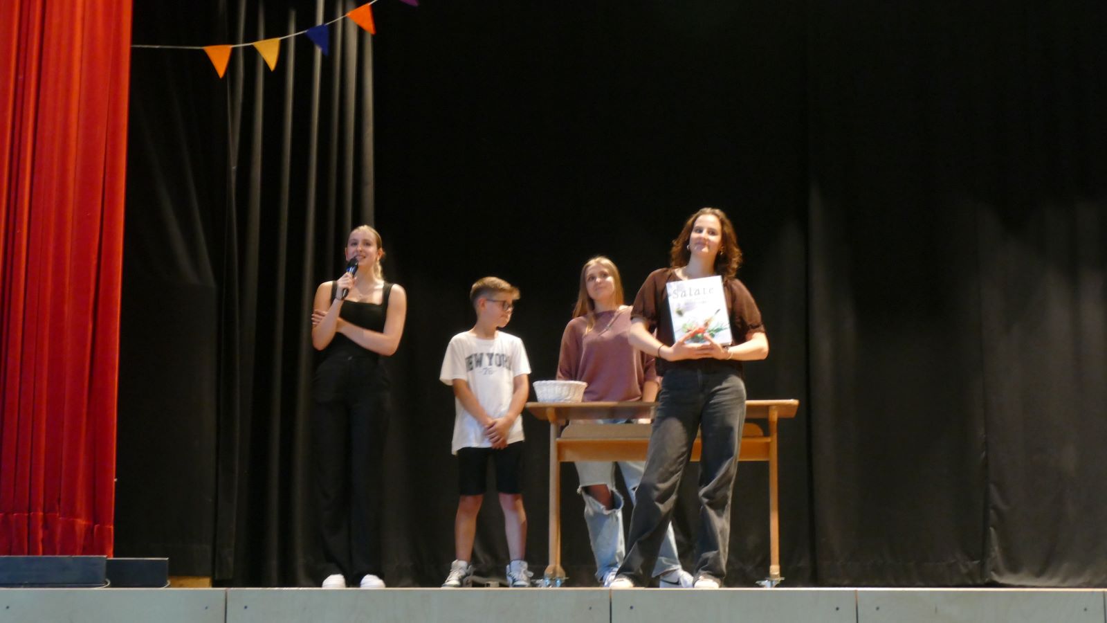 Am 16.06.2025 verwandelte sich unsere Schule zu einem kleinen Jahrmarkt und in der Aula wurde auf der Bühne ein buntes Programm geboten, denn der Kulturabend der 12. Klasse stand an. Dieser besondere Abend, der mit viel Mühe vorbereitet worden war, war ein voller Erfolg