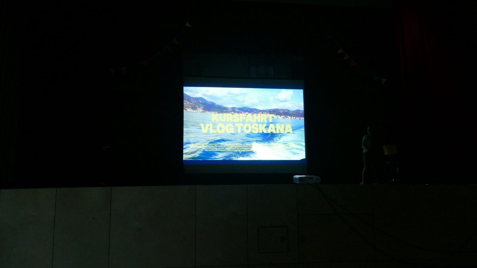 Die Lehrerinnen aus den beiden Stammkursen, Sr. Christamaria und Frau Bürger, berichteten auf kreative Art und Weise von unserer Kursfahrt in die Toskana im Mai dieses Jahres und leiteten perfekt zum selbst geschnittene Kursfahrtsvideo über, der einen schönen Rückblick mit vielen unvergesslichen Momenten der Fahrt bot.
