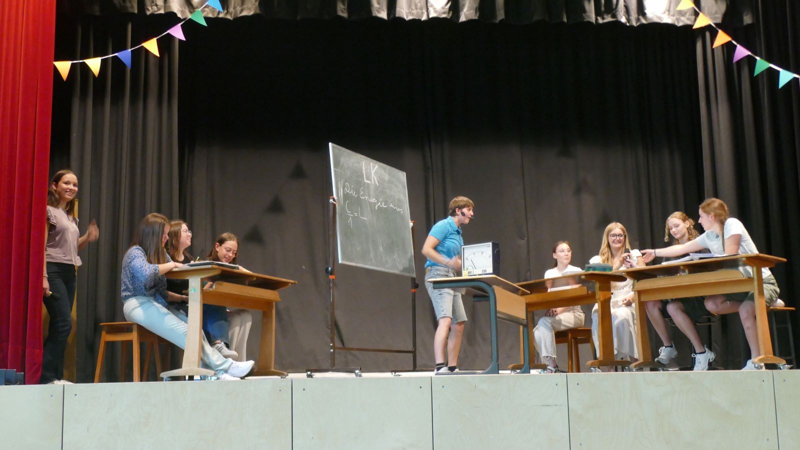 Der Physik-LK und der Physik-GK bewiesen, dass Naturwissenschaften nicht trocken sein müssen. Ihr Sketch über typische Situationen im Unterricht brachte das Publikum ordentlich zum Lachen.