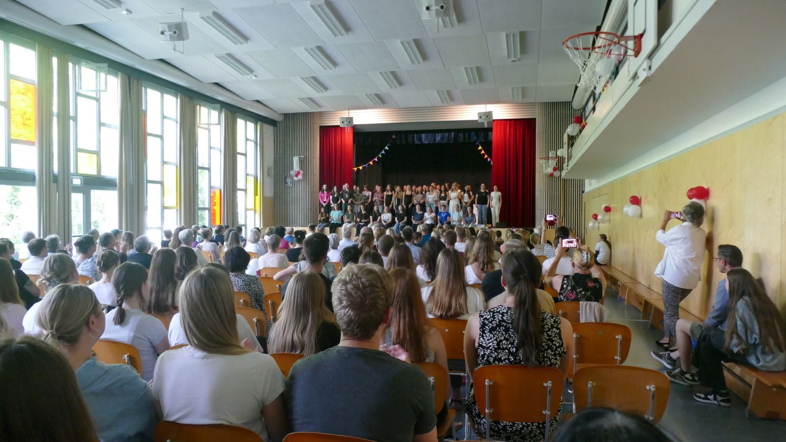 Zum Abschluss gab es eine große Verlosung mit tollen Gewinnen. Alle Lose waren im Vorfeld verkauft worden. Den Schlusspunkt setzte schließlich unser „12er-Lied“, eine neu getextete Strophe zum bereits bekannten 5er-Lied, mit der wir uns als Jahrgang vom Publikum verabschiedeten.