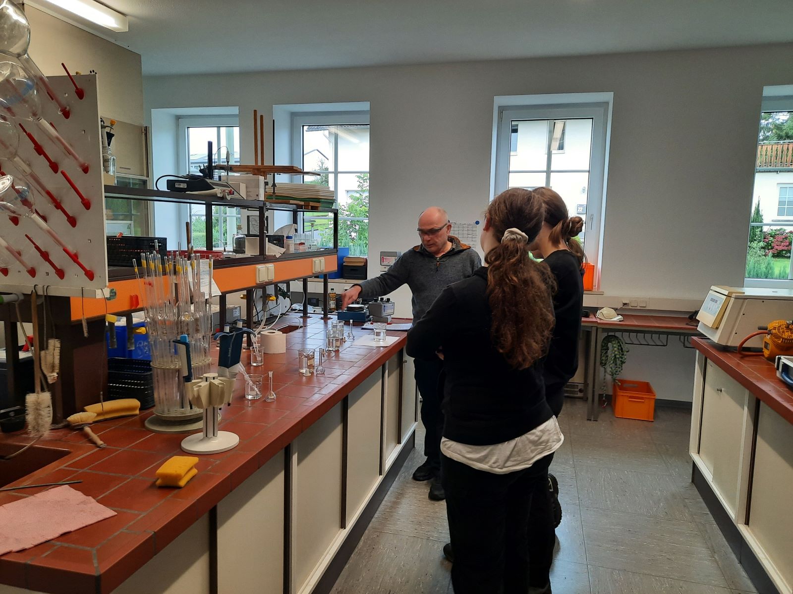 Am frühen Nachmittag ging es dann durchnässt, aber guter Dinge zurück in die Forschungsstation und eine Gruppe mikroskopierte das Plankton zur Bestimmung der Arten. Anhand der gefundenen Spezies lassen sich Rückschlüsse auf die Gewässerqualität schließen. Die zweite Gruppe ging zu Herrn Dawen in das Labor und bestimmte mit Hilfe von Fotometrie den Nitrat-, Ammonium- und Phosphatgehalt aus verschiedenen Wassertiefen. Die Untersuchungen ergaben, dass die Seequalität sich zwar in den letzten Jahrzehnten verbessert hat, aber immer noch sehr nährstoffreich mit Faulschlammbildung am Grund ist.