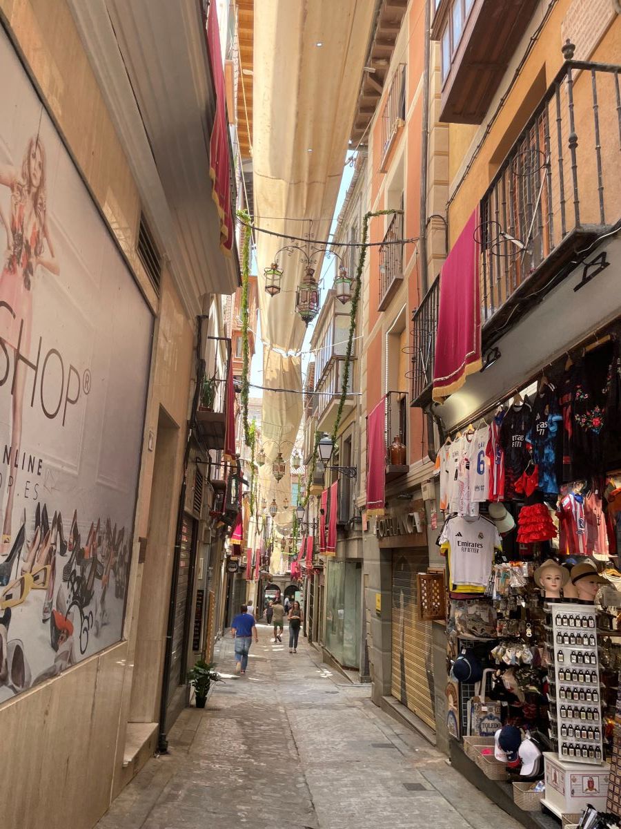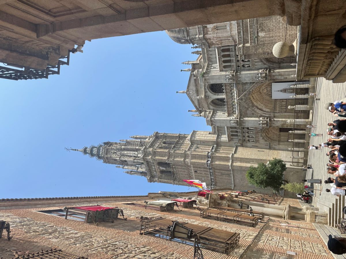 Am Donnerstag, den 12.06., sind wir, die deutschen Schülerinnen, morgens in die Stadt Toledo gefahren. Dort liefen gerade die Vorbereitungen für Fronleichnam, sodass wir die verschiedenen Dekorationen bewundern konnten. Am Vormittag besuchten wir die Kathedrale, in der es sowohl Kunstwerke als auch goldgeschmückte Fassaden zu sehen gab.