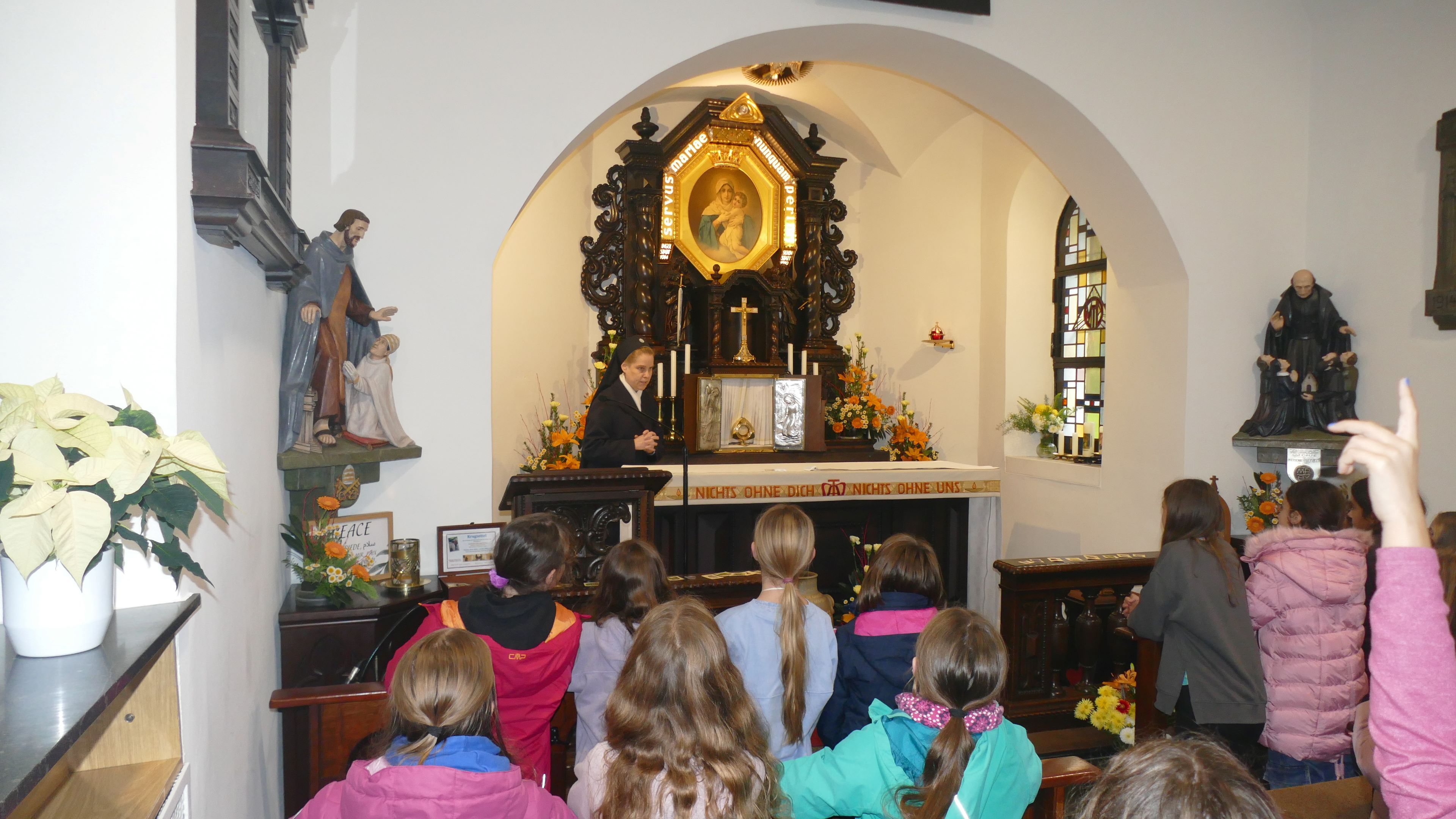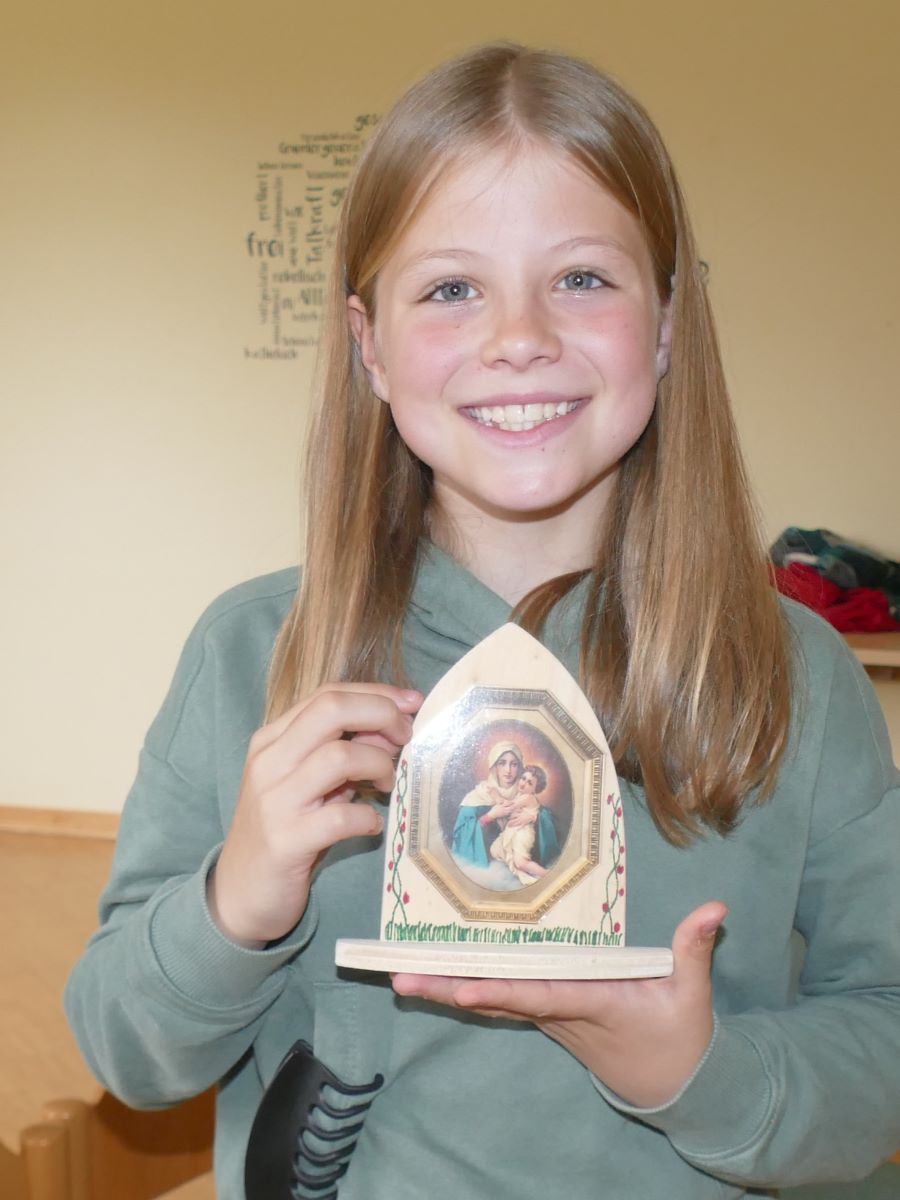 Bei einer Wanderung durch Schönstatt kamen die Schülerinnen der Geschichte des (Ur)Heiligtums auf die Spur und lernten Pater Kentenich kennen, der 1912 als Vertrauenslehrer nach Schönstatt kam, mit seiner Freiheits- und Vertrauenspädagogik neue Wege ging und mit jungen Leuten unter dem Segen Gottes und im Bündnis mit der Gottesmutter das ins Leben rief, was heute auf allen Kontinenten in über 60 Ländern als „Schönstattbewegung“ bekannt ist. Auch das Werden und Wachsen sowie das Besondere der Schönstätter Marienschule ist mit dem Wissen um die Schönstattgeschichte besser zu verstehen. Schließlich gestalteten die Schülerinnen ihr „SMS-Haus“.