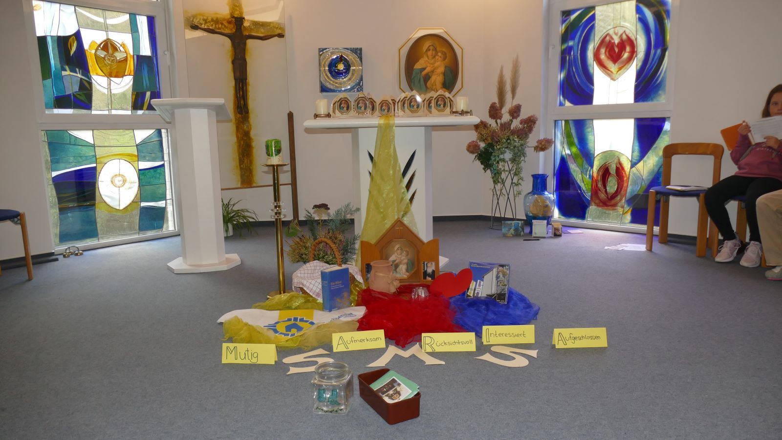 Während der Integrationstage lernten sich die Schülerinnen der 5b und 5c vor den Herbstferien und die der 5a und 5d unmittelbar danach bei vielen Gemeinschaftsspielen besser kennen. Und sie entdeckten Maria von Nazaret, die Namensgeberin der SMS, als junge Frau, die Gott und den Menschen nahe ist, die in den jeweiligen Begebenheiten mutig und stark, herzlich und einfühlsam handelt, die wahrnimmt, wo jemand Hilfe braucht und Initiative ergreift, die auf Jesus vertraut und Menschen auf dem Weg des Glaubens begleitet.