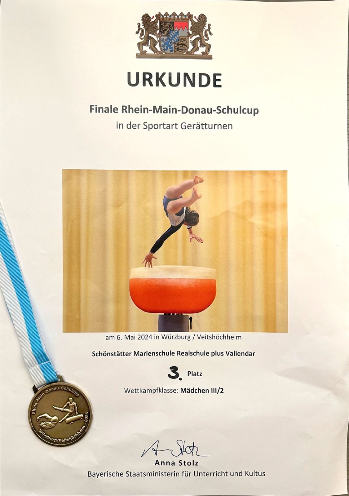 Am 05. und 06. Mai war es für unsere Turnerinnen wieder soweit! Als erneute Landesmeisterinnen im Gerätturnen mussten sich Paulina B., Sophie G., Ella und Zoe H. auf dem Rhein-Main-Donau-Cup gegen die Mannschaften aus Baden-Württemberg und Bayern beweisen. Diesmal ging die Reise nach Würzburg im wunderschönen Bayern. Leider wurde die Vorfreude etwas gedämpft, da Emma D. verletzungsbedingt nicht mitfahren konnte.