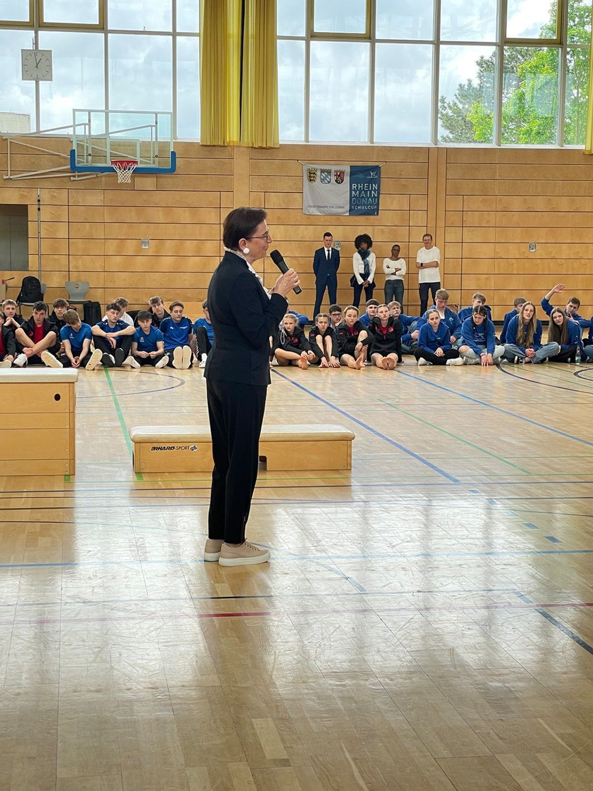 Die Siegerehrung erfolgte durch die Landesschulobfrau im Gerätturnen Frau Margarete Probst-Bindel, die 1972 bei den Olympischen Spielen in München für Deutschland gestartet ist.
