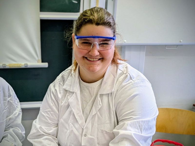 Das Bild ist vom MINT-Tag 2024, an dem sie als Ehemalige Frau Böhm, die Ronja in ihrer Schulzeit sehr gefördert hatte, bei einem Workshop unterstützt hat.