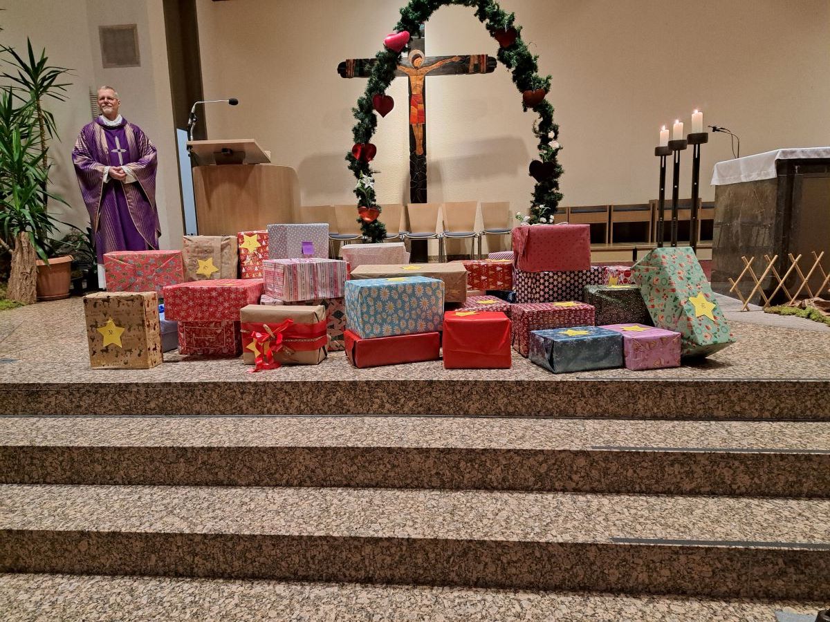Auch in diesem Jahr hat sich jede Klasse wieder sehr viel Mühe bei dem Verpacken ihrer Weihnachtspäckchen gegeben. Insgesamt 40 Päckchen konnten dann am letzten Schultag während des Gottesdienstes an zwei Vertreter der Organisation Lichtzeichen übergeben werde.