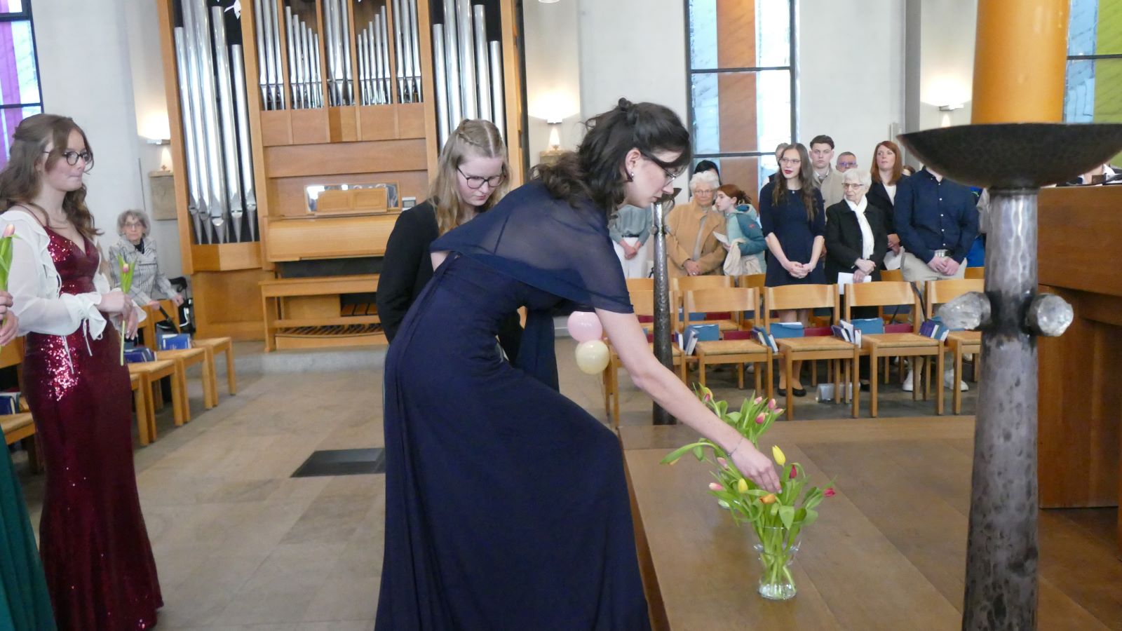 In dem Gottesdienst wurde auch den Familien und Freunden der Abiturientinnen Dankbarkeit entgegengebracht. Die Mutter einer Abiturientin sowie ein jüngerer Bruder waren mit in der Reihe derer, die eine Fürbitte vortrugen.