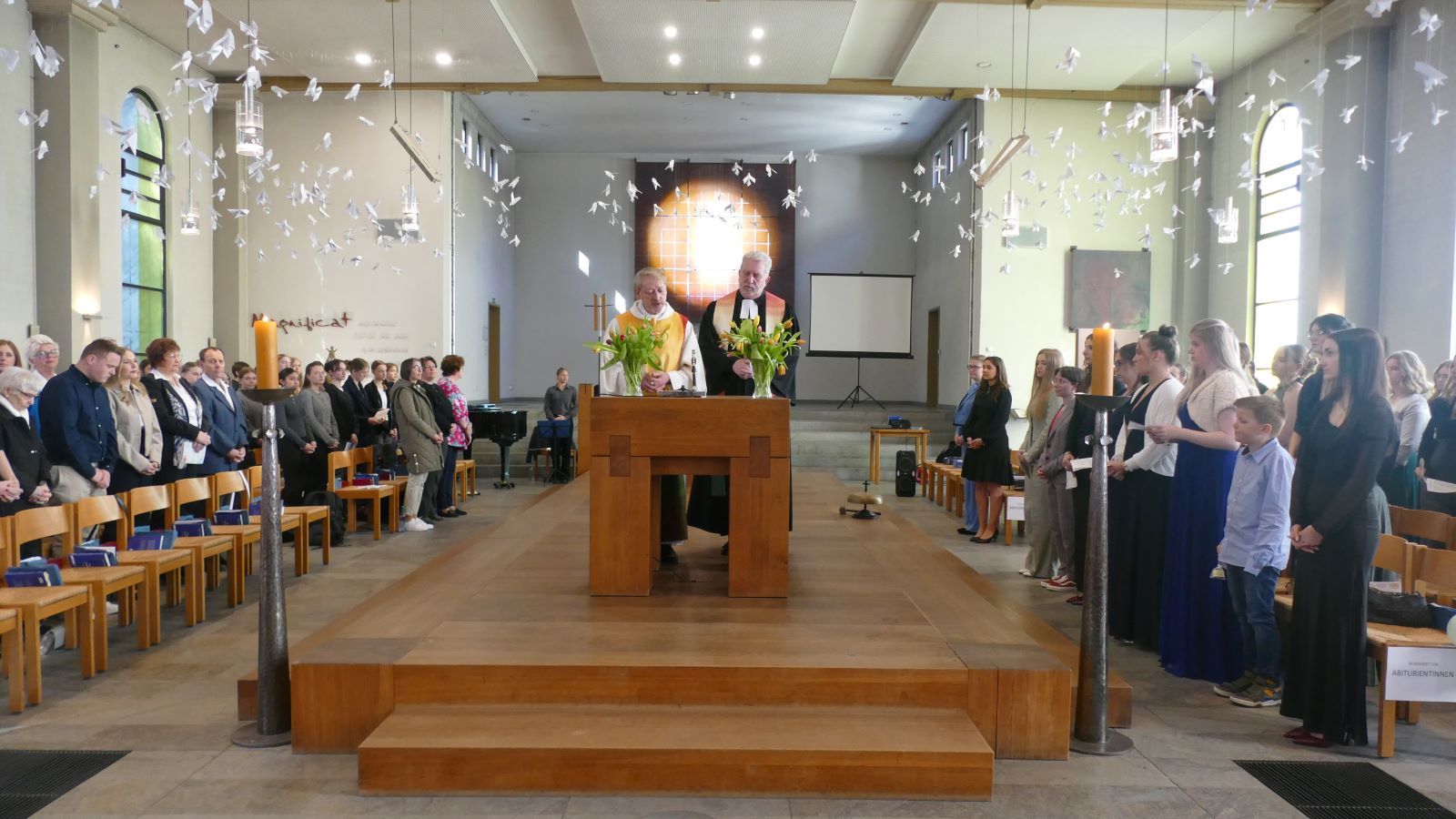 In seiner Auslegung des Evangeliums vom Senfkorn und Sauerteig ermutigte Pfarrer Gerd Götz die Abiturientinnen: „Lasst eure Schönheit wachsen. Macht diese Welt schöner!“ Er rief sie auf, ihre Liebe strahlen zu lassen, gute Früchte zu bringen und diese mit anderen zu teilen.