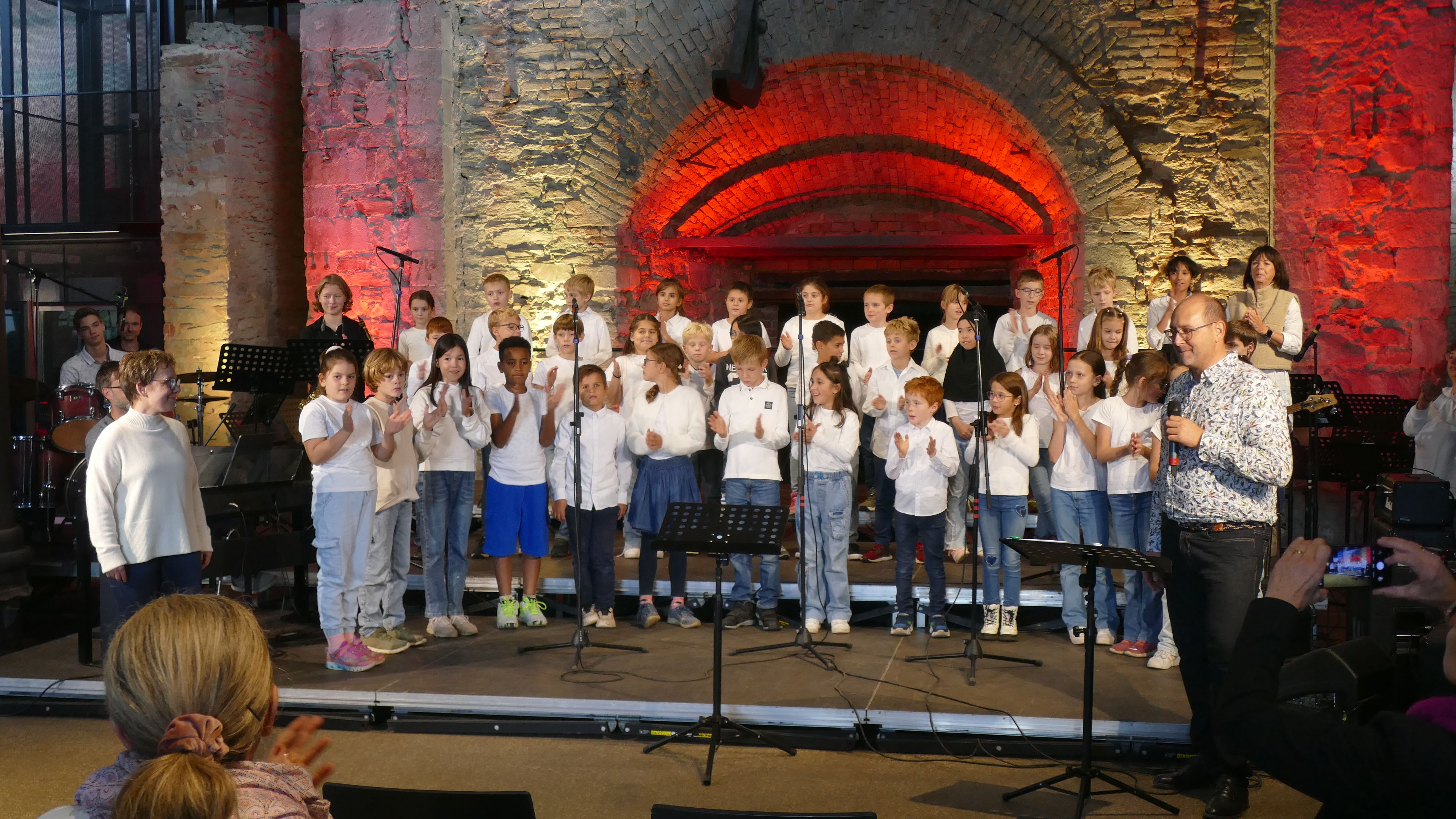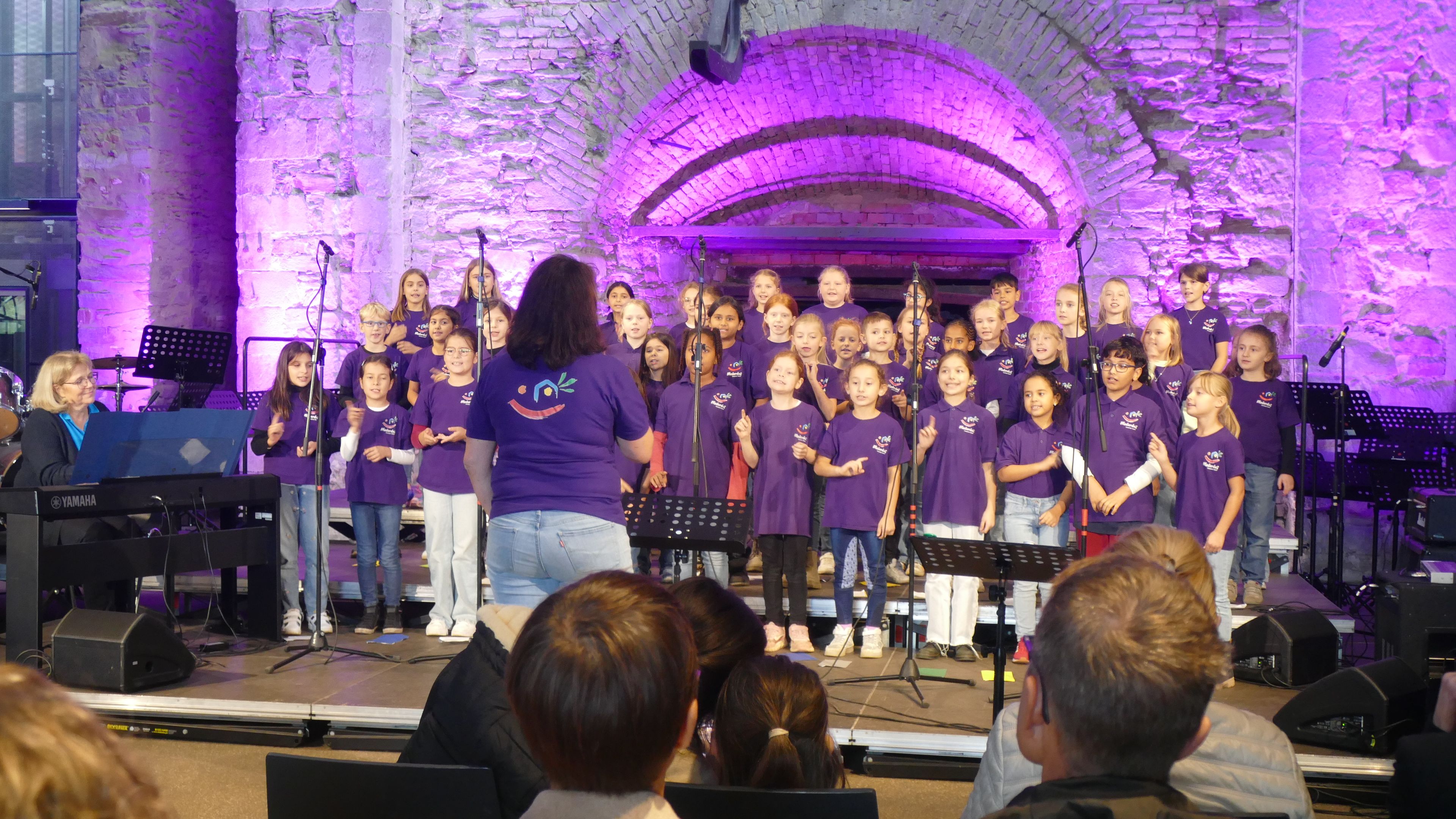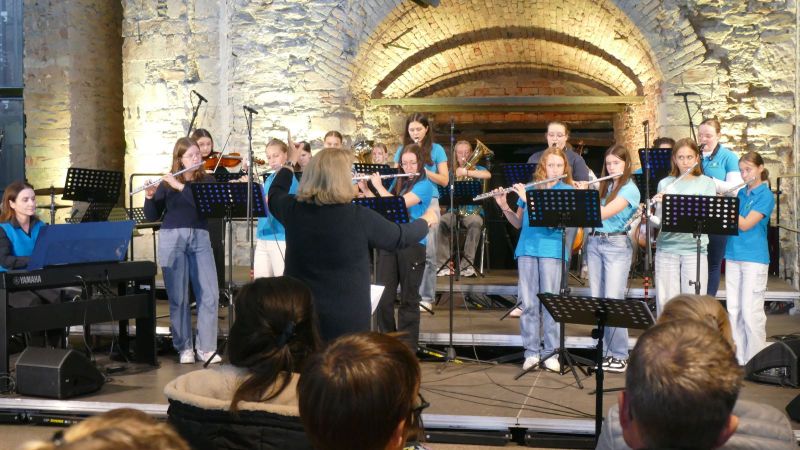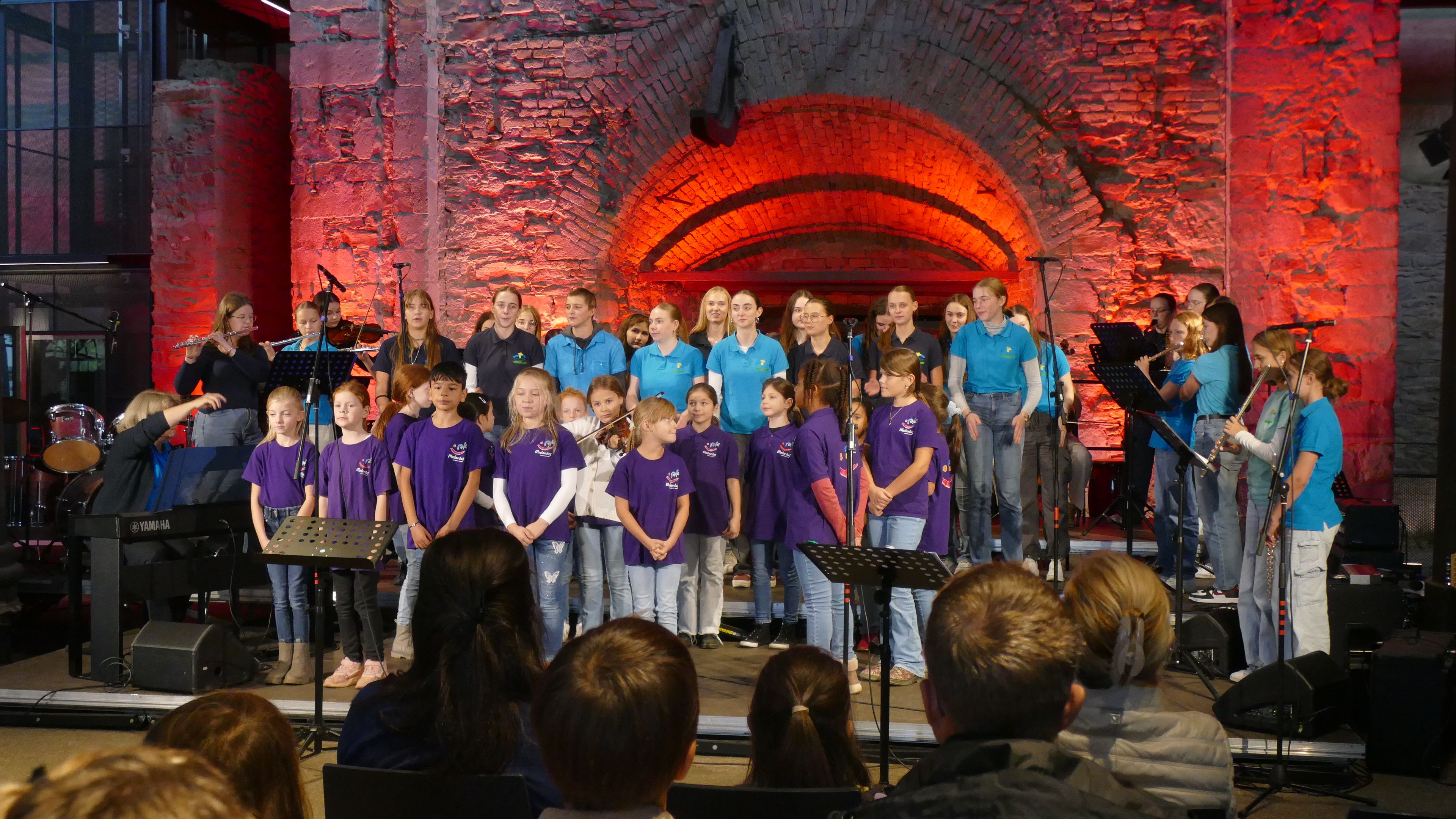 Ein musikalisches Erlebnis der besonderen Art bot die Veranstaltung "Schulen musizieren" in der historischen Gießhalle Bendorf-Sayn. Schulchor und Schulorchester der Marienschule beteiligten sich am 01.10.2024 mit verschiedenen Songs und Musikstücken und variierten gemeinsam mit der Medardus-Grundschule in Bendorf in einem kleinen „Götterfunken-Projekt“ die berühmte „Ode an die Freude“, die am Schluss als Finale noch einmal mit allen Beteiligten erklang.
