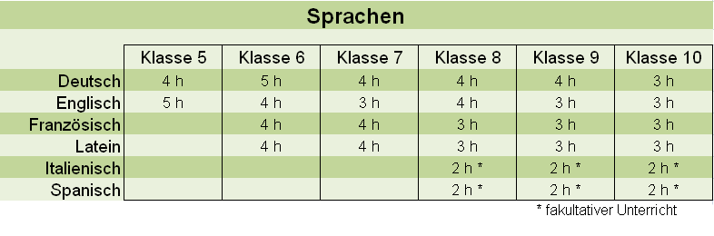 Ab Klasse 8 gibt es die Möglichkeit, als dritte Fremsprache Italienisch oder Spanisch zu lernen, in Klasse 9 erweitert Informatik das Angebot.