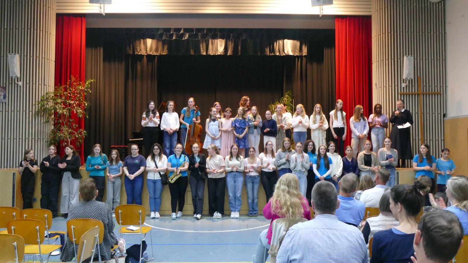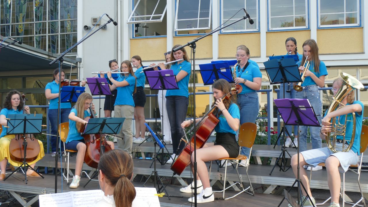Für Instrumentalisten von Klasse 8 – 13 gibt es das große Schulorchester, jüngere Schülerinnen steigen mit dem Junior-Orchester ein (Klasse 5- 7).