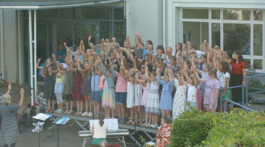 Im Schulchor singen Schülerinnen aus Klasse 6 – 13 .