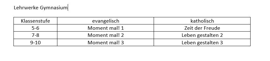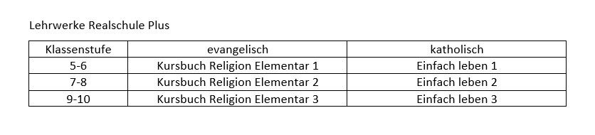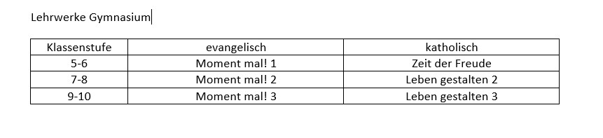 Alle Schülerinnen, unabhängig ihrer Religion oder Konfession, nehmen entweder am evangelischen oder katholischen Religionsunterricht teil. Unterrichtet wird das Fach in allen Jahrgangsstufen zweistündig pro Woche.